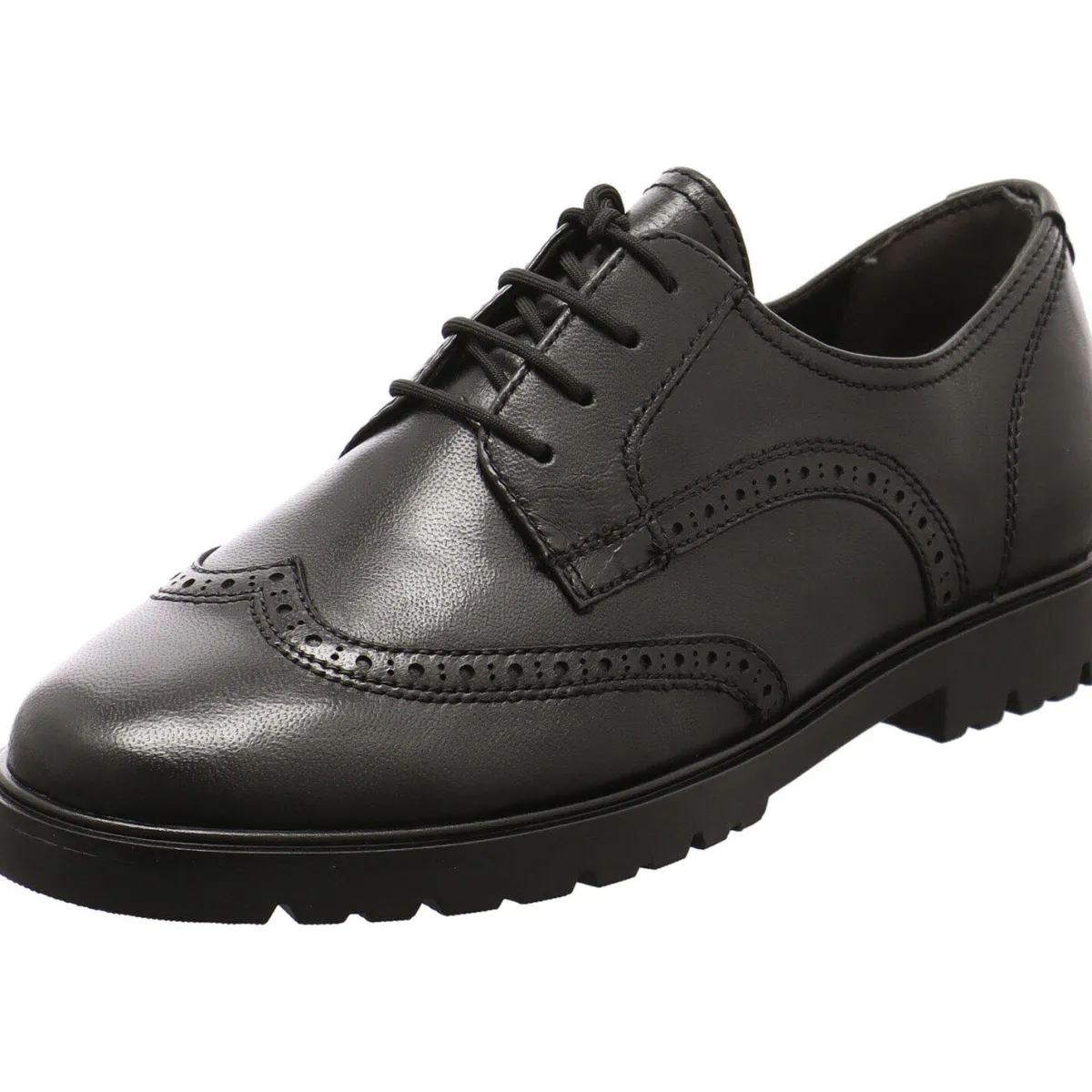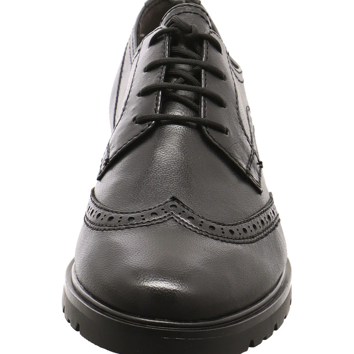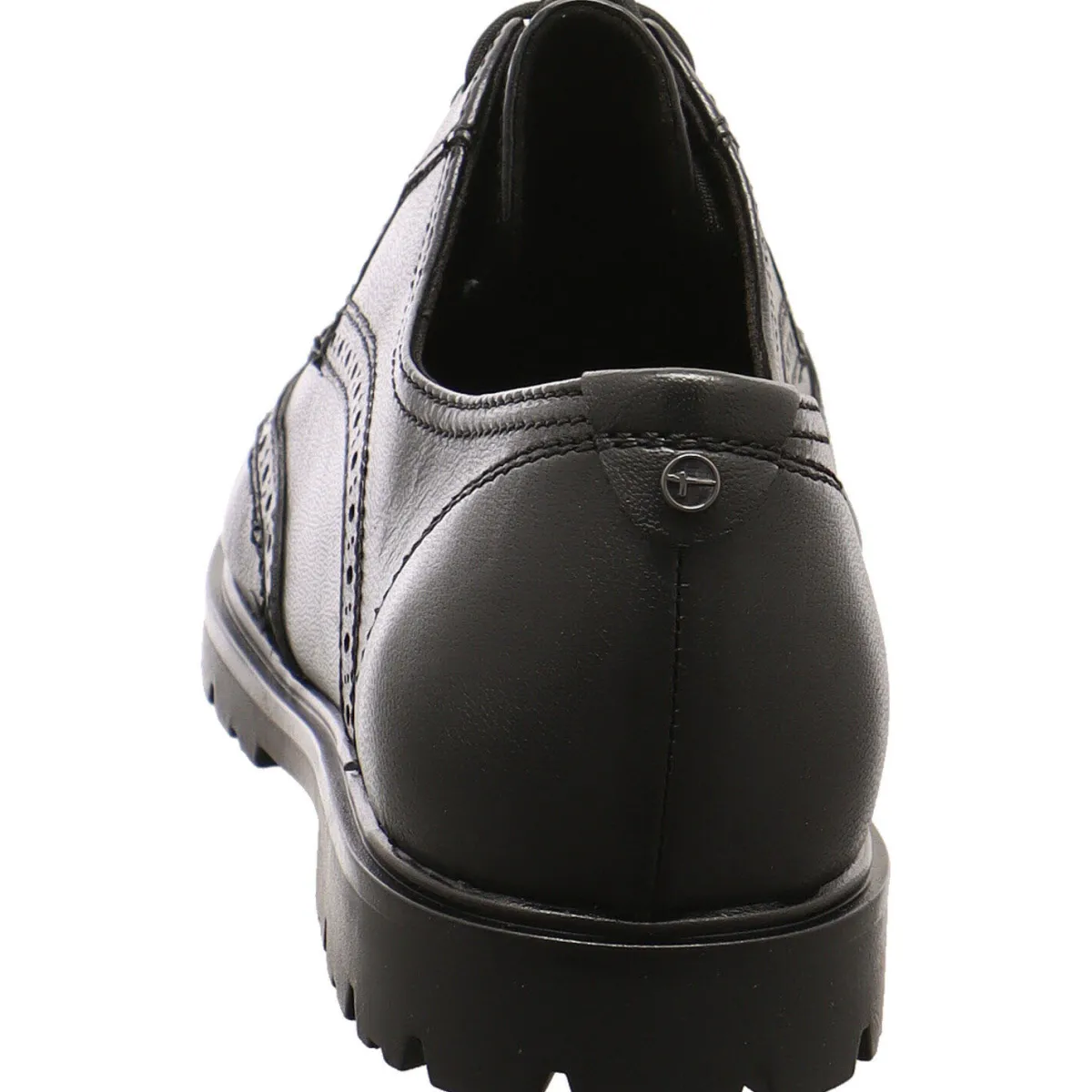 Das Obermaterial aus Echtleder in Schwarz begeistert durch seine klassische Prägung und Linienführung.