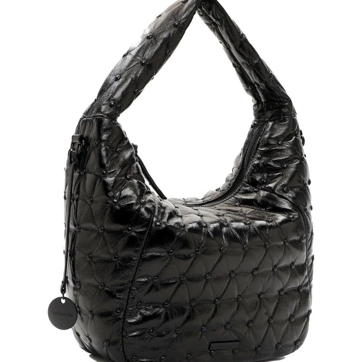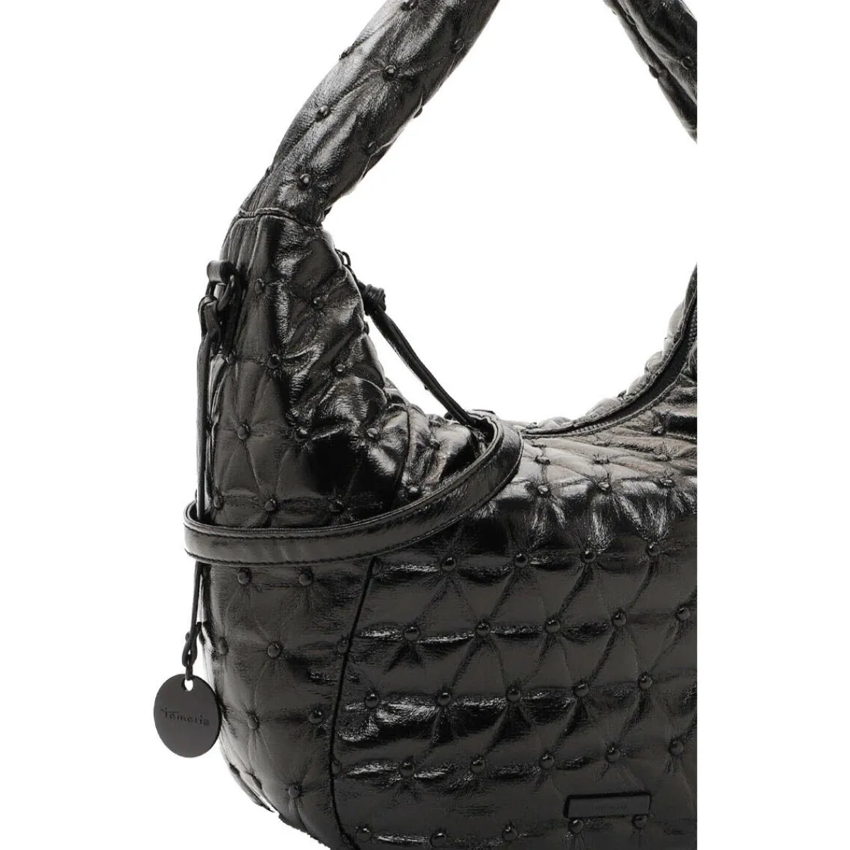 Edel verarbeitetes Kunstleder in Schwarz wurde mit einer angenehmen Haptik versehen, die der Handtasche das gewisse Etwas verleiht. Auf das Obermaterial wurden viele kleine Knöpfen angebracht, wodurch ein hübsches Steppmuster entsteht. Sie ist der ideale Begleiter für deinen Stadtbummel, denn sie verstaut übersichtlich und elegant deine liebsten Errungenschaften.