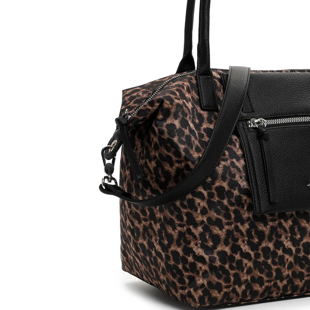 Die Handtasche wurde aus pflegeleichtem Polyester in Schwarz und Braun gefertigt. Die Tasche ist durch ihr stilvolles Design ein besonderer Blickfang und begleitet dich besonders trandig in der Freizeit und ins Büro.