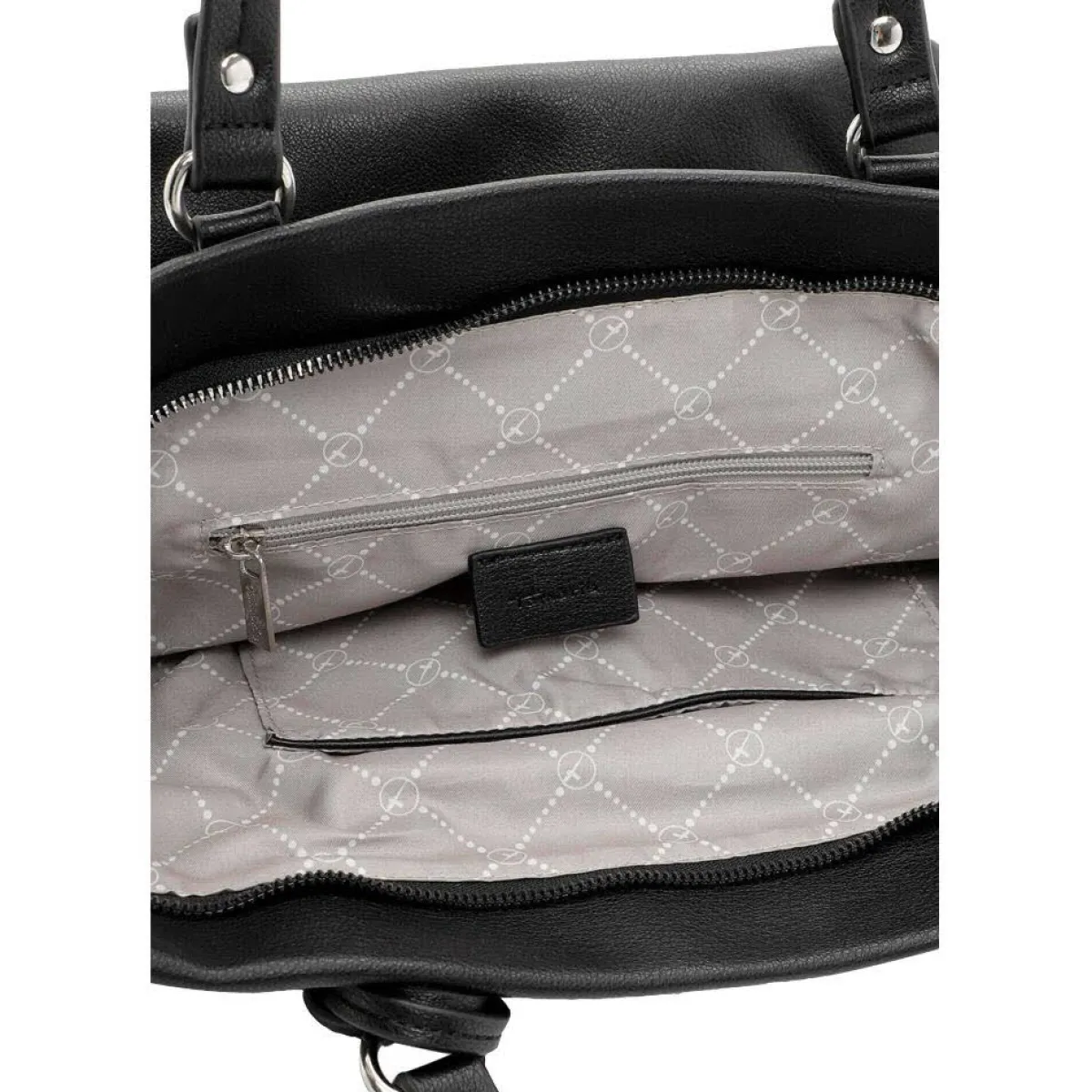Ein Reißverschlussfach und ein Steckfach innen