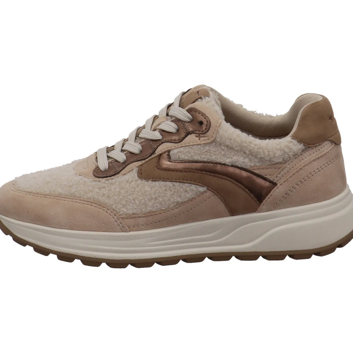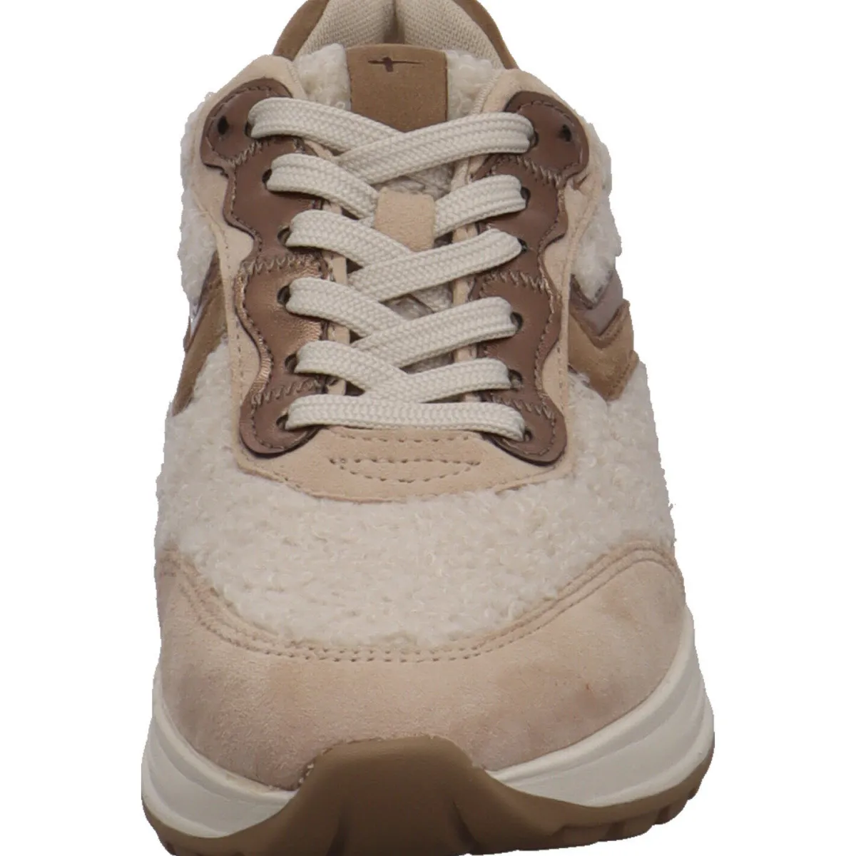 Das griffige Obermaterial aus Nubukleder in Beige Braun besticht durch tolle Details aus Teddyfell und glänzende Parts in Metallic-Optik. Die Innensohle ist als Wechselfußbett gearbeitet und besteht aus weichem Textil. Die breiten Schnürsenkel verleihen dem Schuh eine besondere Optik.