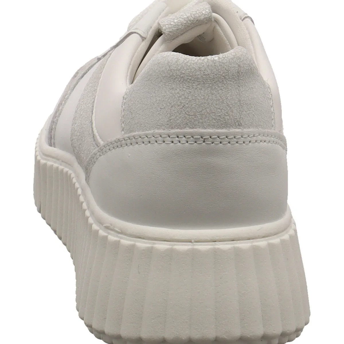 Er begeistert und durch seine tolle Ovleray Optik mit verschiedenen Haptiken und Farbnuancen, aus eine Mix aus Echtleder und Synthetik in Weiß und Grau.