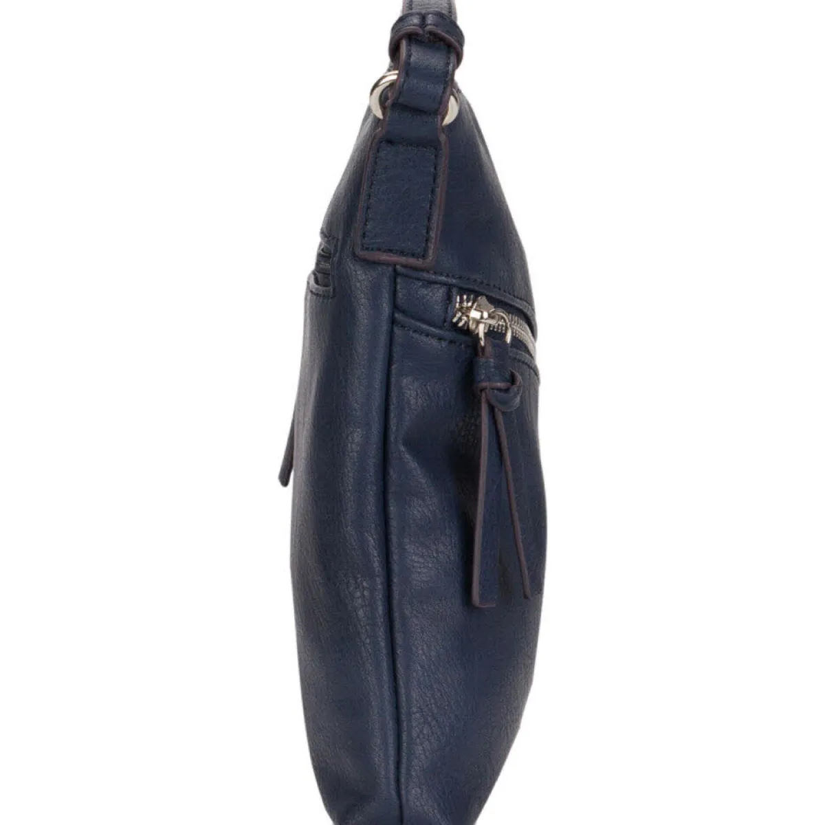Gefertigt aus authentisch genarbtem Kunstleder in Blau macht die Handtasche zu jedem Outfit eine ausgesprochen gute Figur.