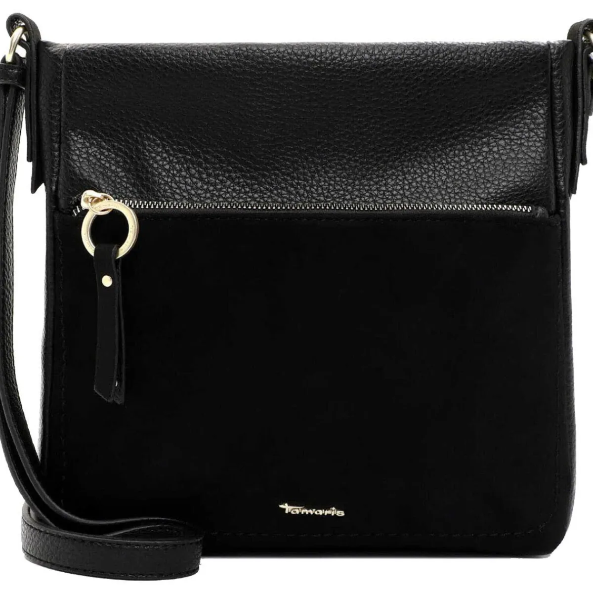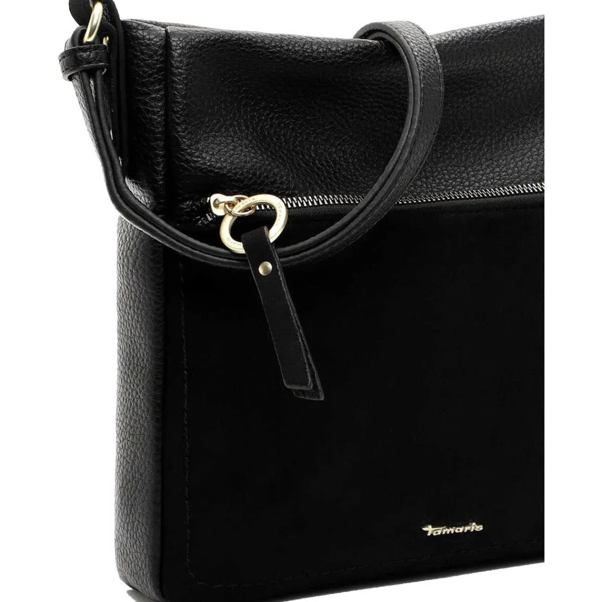 Gefertigt aus einem Materialmix aus authentisch genarbtem Kunstleder und softem Kunstleder in Velourslederoptik in Schwarz macht die Handtasche zu jedem Outfit eine ausgesprochen gute Figur.