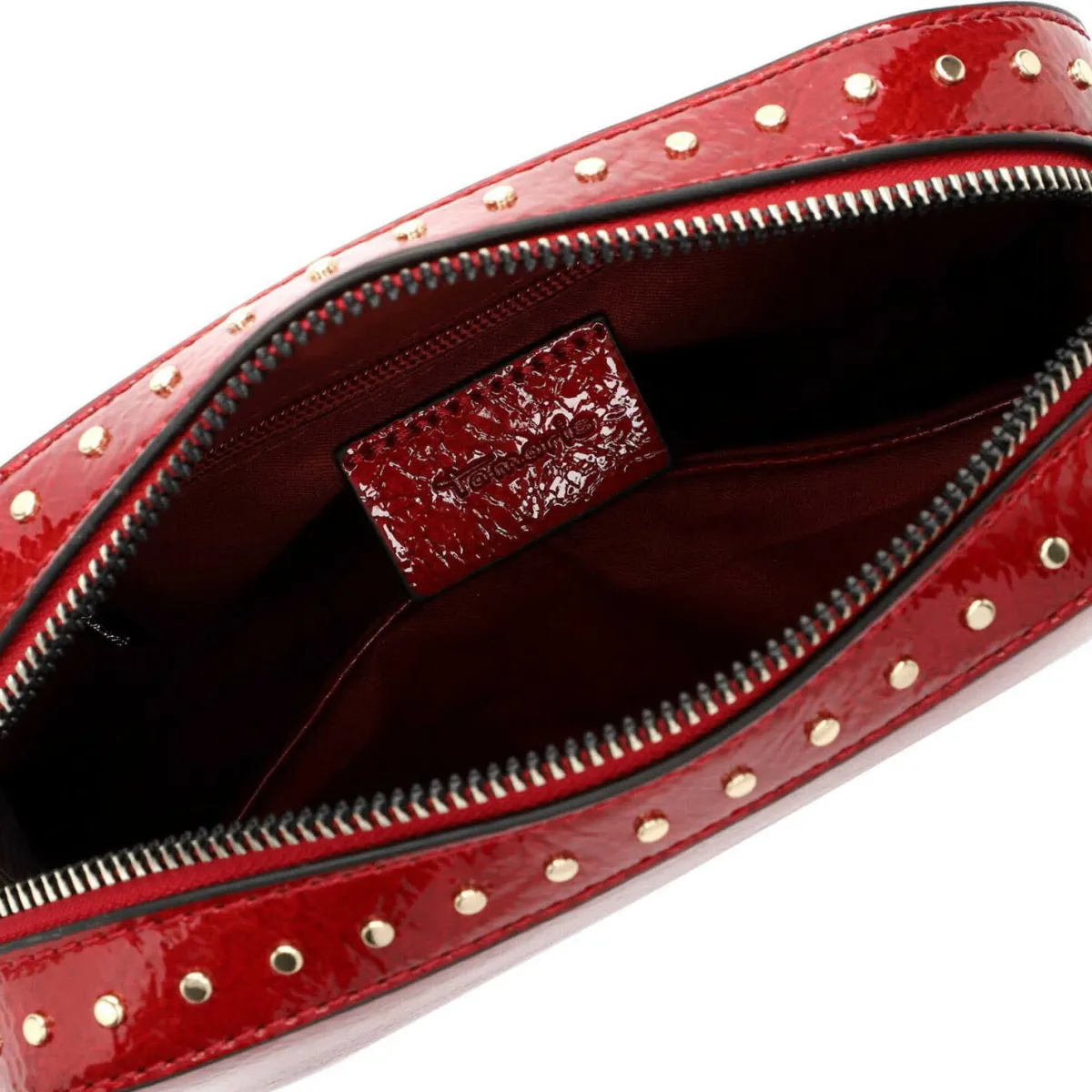 Eyecatcher sind das Obermaterial mit einem glänzenden Lack-Finish und die Nieten in Gold.