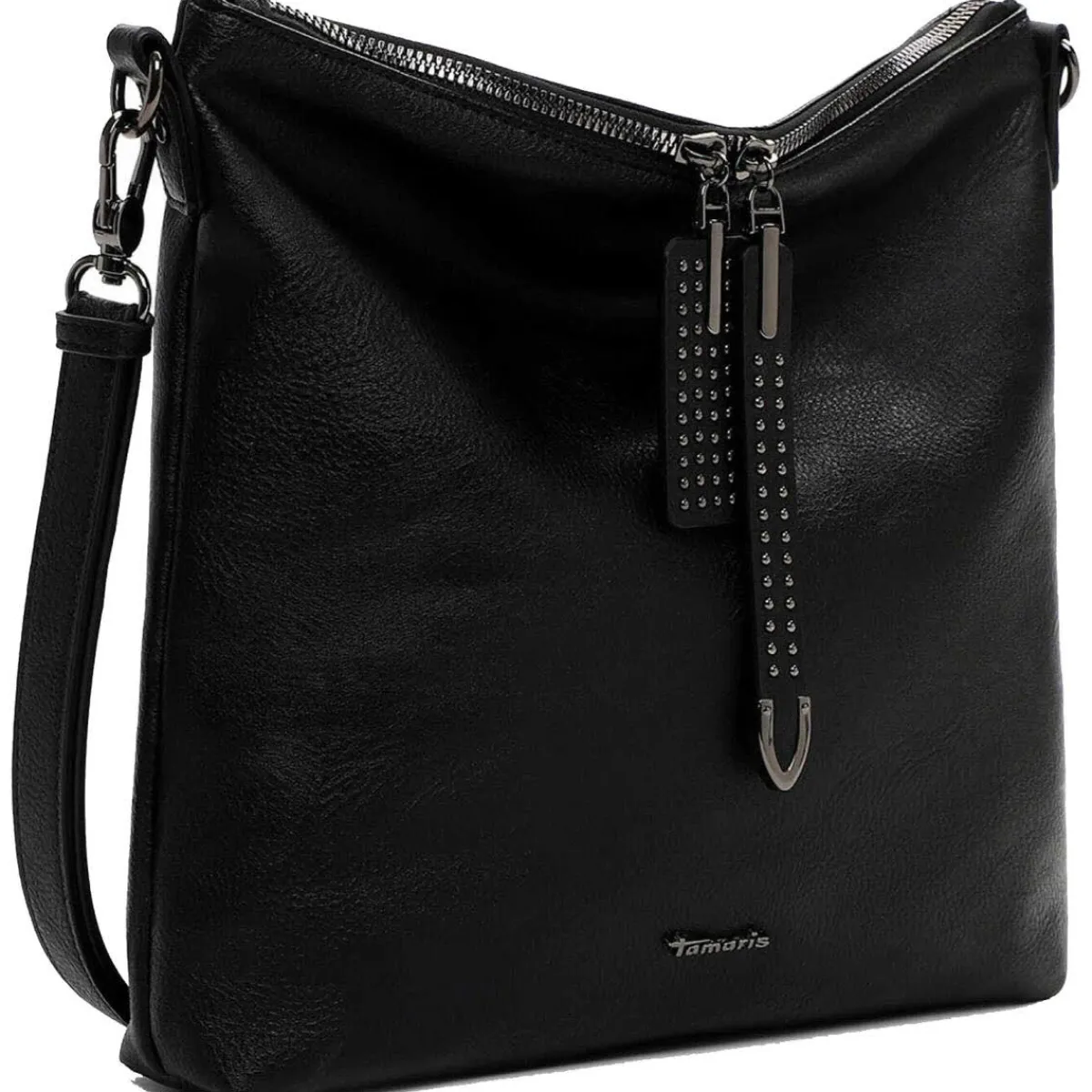 Gefertigt aus pflegeleichtem Kunstleder in Schwarz macht die Handtasche zu jedem Outfit eine ausgesprochen gute Figur.