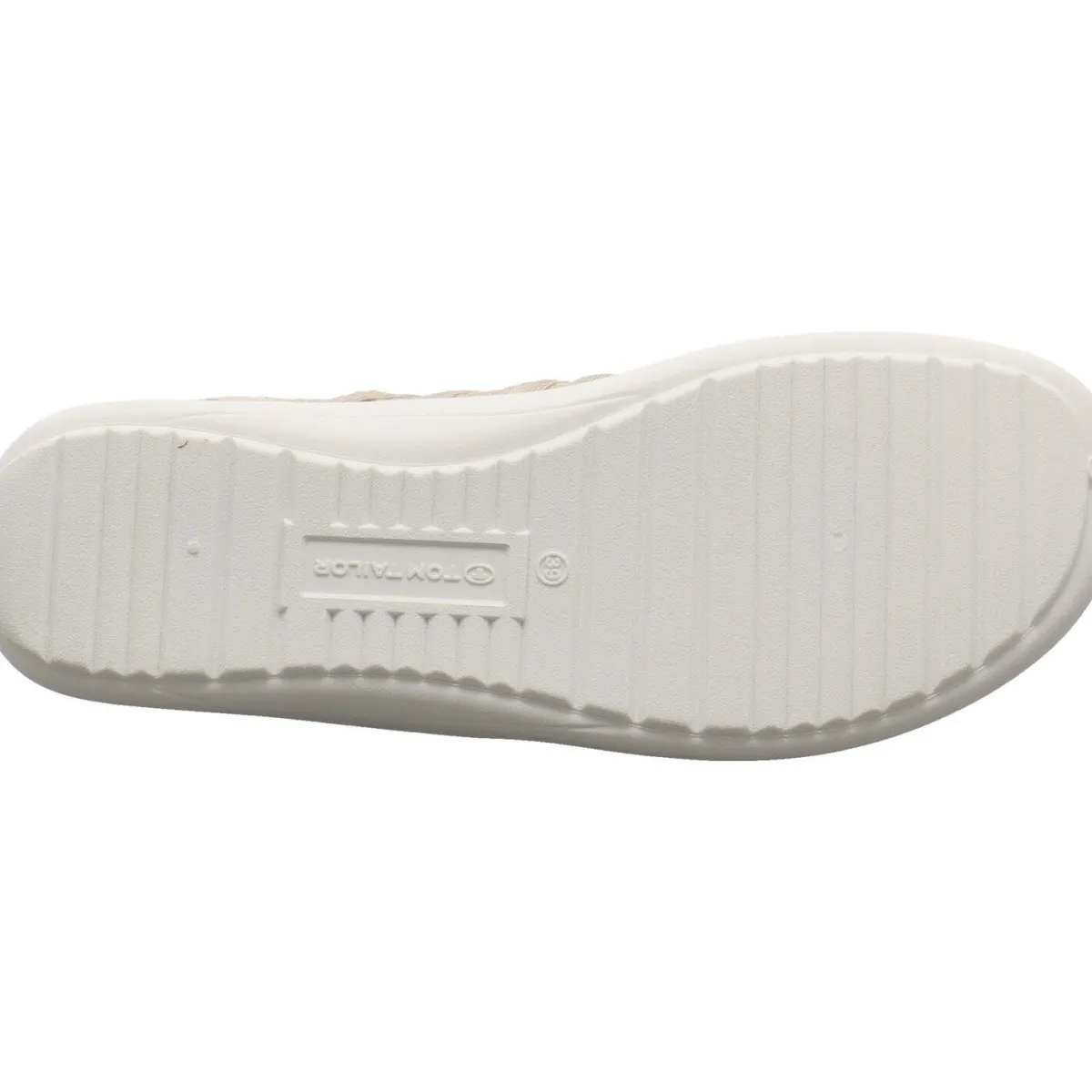 Das Obermaterial aus flexiblem Textil Mesh in Beige ein echter Hingucker. Die stabilisierenden Gummibänder ahmen eine Schnürung nach und helfen, zusammen mit der Lasche am Schaft bei einem leichten Einstieg. Die dünne Laufsohle in Weiß, hat einen leichten Grip und die Innensohle ist herausnehmbar, was ein tolles Barfußgefühl garantiert.
