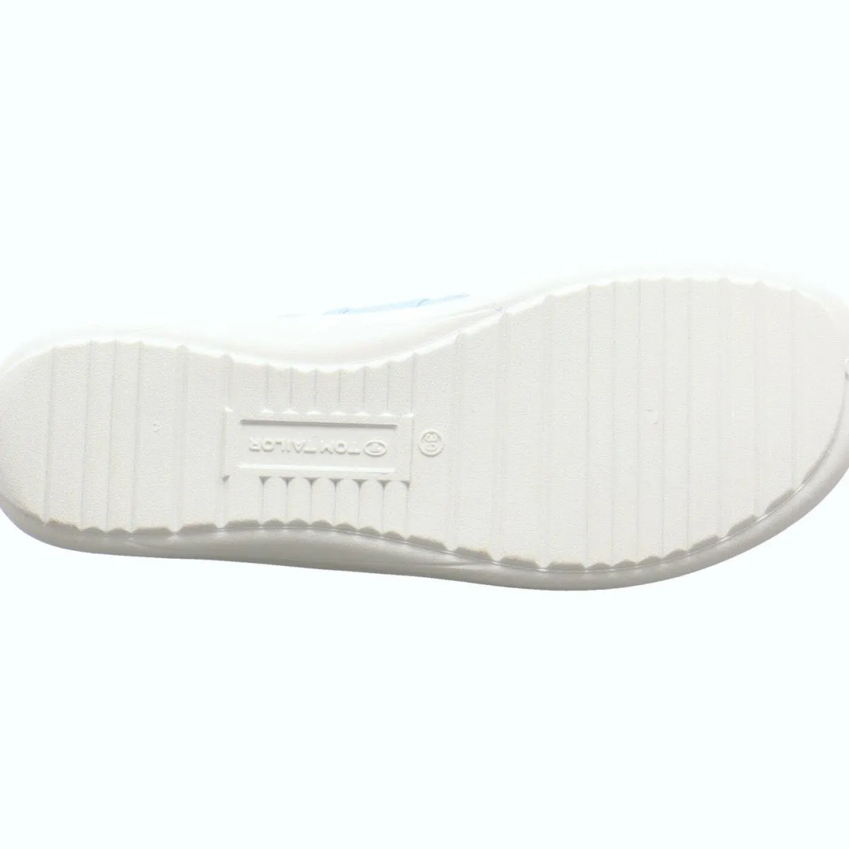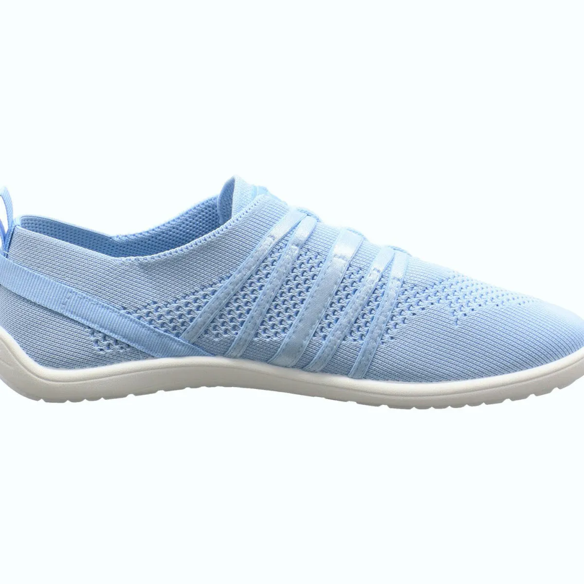 Das Obermaterial aus flexiblem Textil Mesh in Blau ist ein echter Hingucker. Die stabilisierenden Gummibänder ahmen eine Schnürung nach und helfen, zusammen mit der Lasche am Schaft bei einem leichten Einstieg. Die dünne Laufsohle in Weiß, hat einen leichten Grip und die Innensohle ist herausnehmbar, was ein tolles Barfußgefühl garantiert.