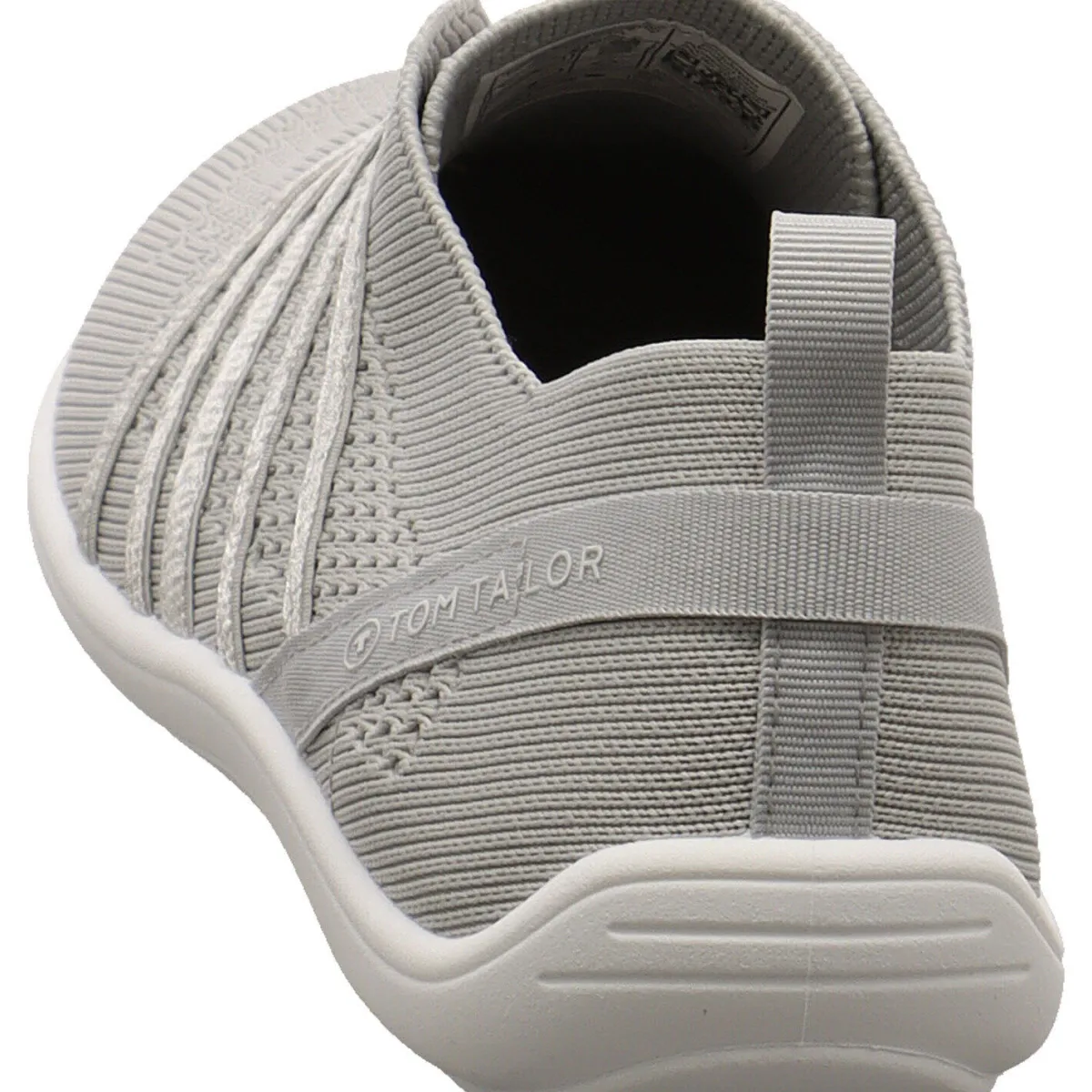 Das Obermaterial aus flexiblem Textil Mesh in Grau ist ein echter Hingucker. Die stabilisierenden Gummibänder ahmen eine Schnürung nach und helfen, zusammen mit der Lasche am Schaft bei einem leichten Einstieg. Die dünne Laufsohle in Weiß, hat einen leichten Grip und die Innensohle ist herausnehmbar, was ein tolles Barfußgefühl garantiert.