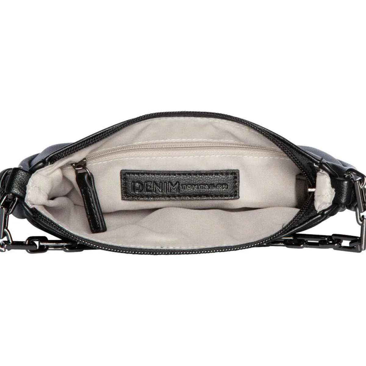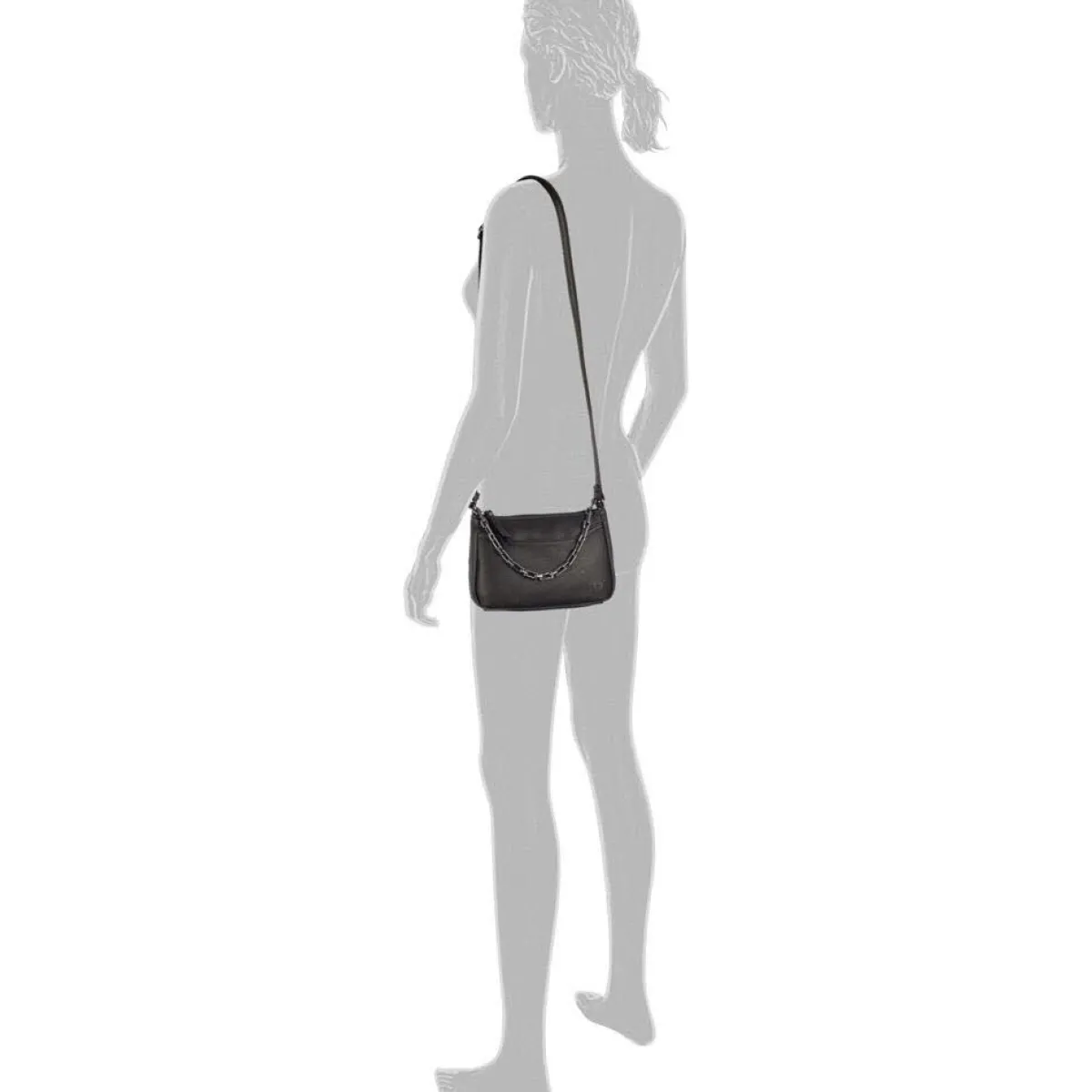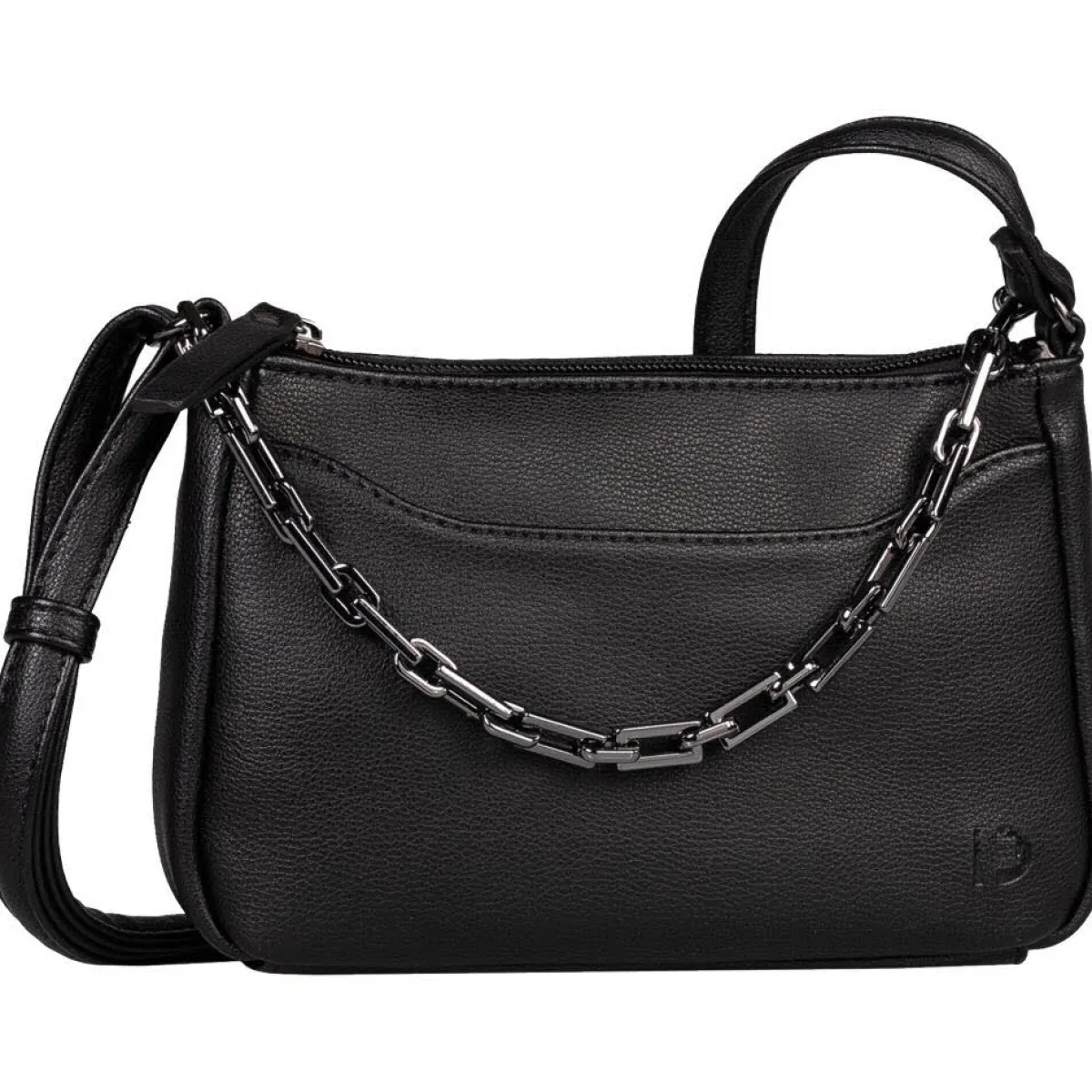 Das Obermaterial aus Kunstleder in Schwarz, harmoniert perfekt zu jedem Outfit. Die Kette an der Vorderseite rundet den Look der Tasche perfekt ab und ist ein echter Hingucker.