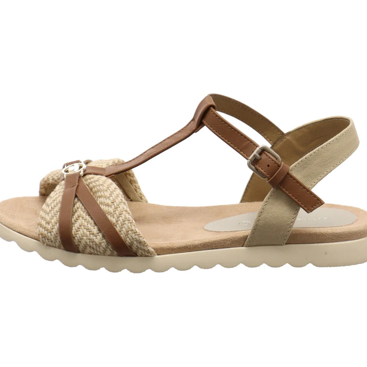 Die Riemen aus Kunstleder in Braun geben guten Halt und der vordere Riemen ist mit Textil in Beige unterlegt.