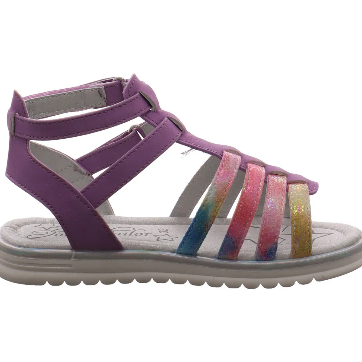Die Innensohle glitzert in Silber Metallic und ist mit Sternen verziert. Ein besonderes Highlight sind die Riemen in Regenbogen Farben und der Schimmer, welcher die Laufsohle umrandet.