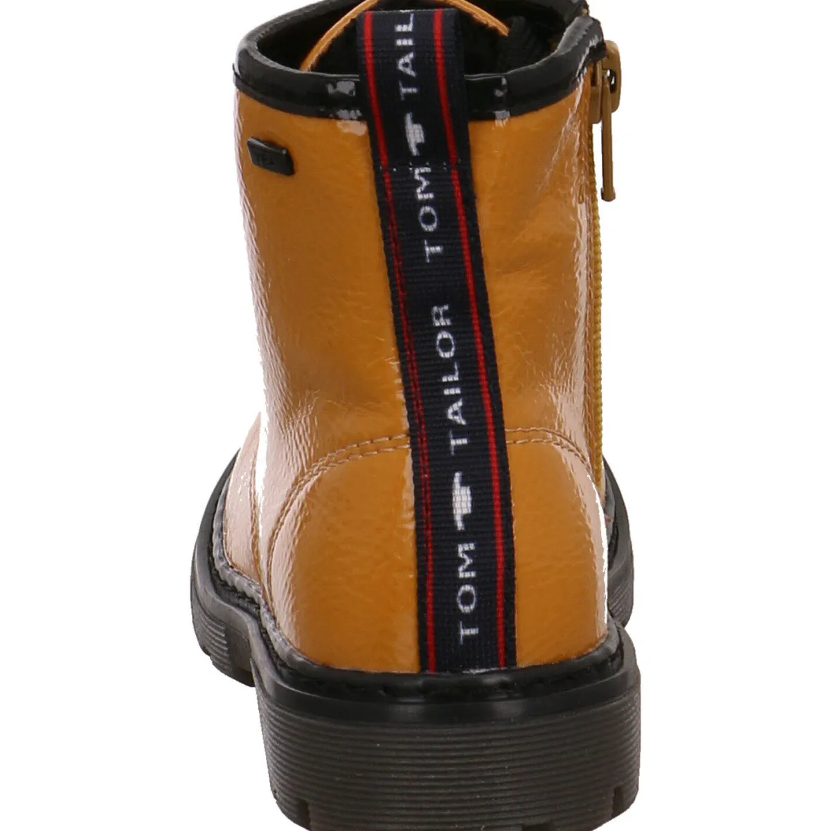 Gefertigt aus Kunstleder in Gelb Lack Optik begeistert er jedes Mädchen durch sein modisches Aussehen. Highlights sind die Schnürsenkel in Schwarz und das Textilband als Einstieghilfe in Blau mit Marken Logo an der Rückseite vom Schaft.