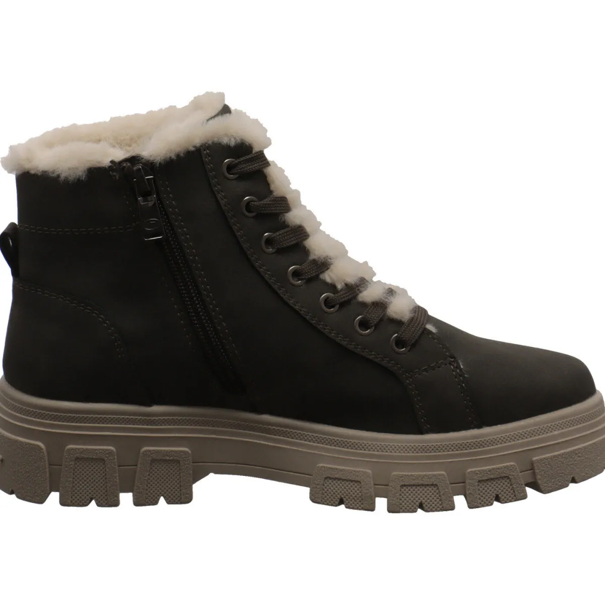 Das soft weiche Obermaterial aus authentisch genarbtem Kunstleder und die stylische Schnürung in kombination mit dem Zierreißverschluss an der Außenseite ziehen Blicke auf sich. Ein weiteres Highlight ist das seitliche Markenlogo und die Ziernähte. Durch den Reißverschluss an der Innenseite ist der Einstieg in den Schuh besonders komfortabel.