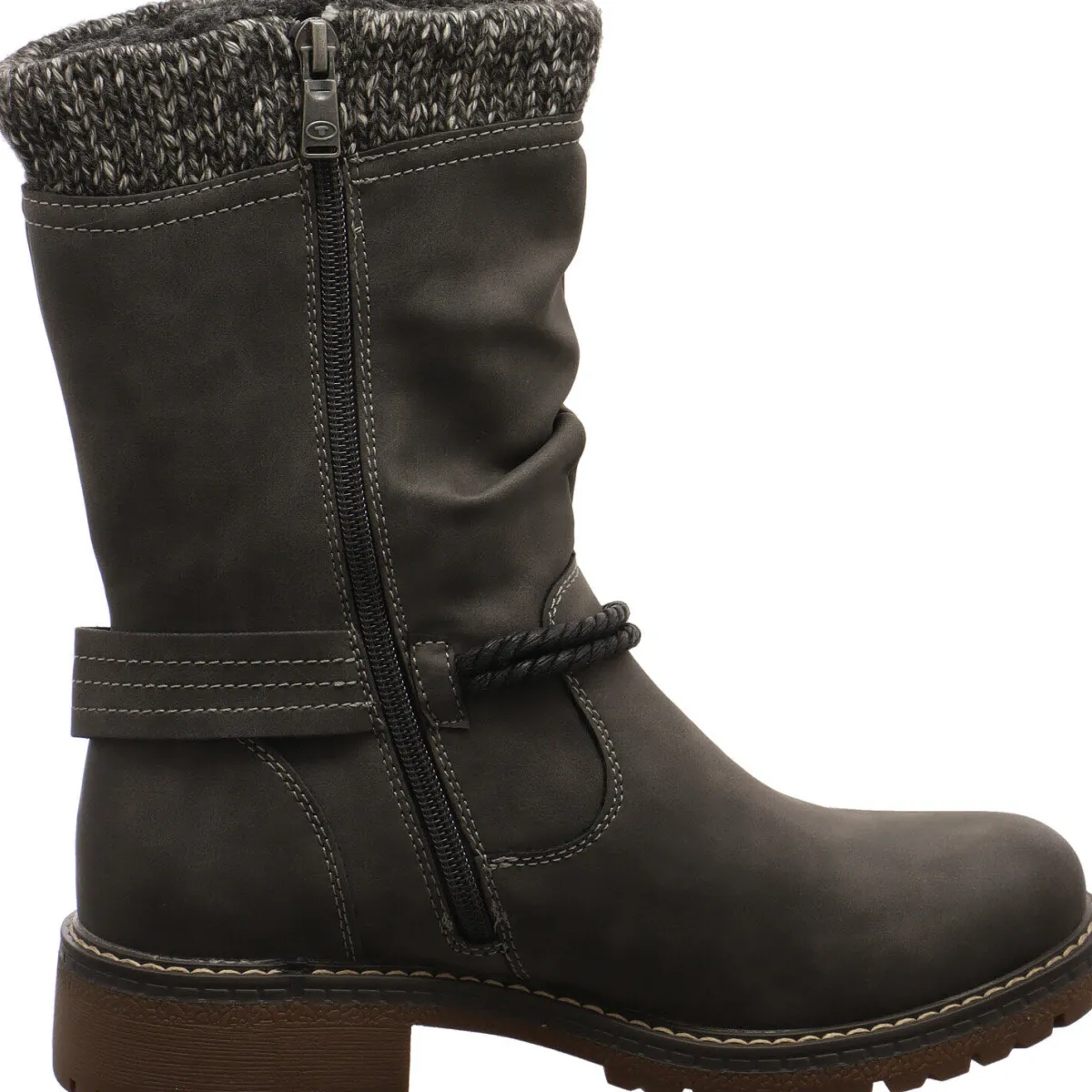 Der Schuh ist außerdem mit der Tom Tailor Tex Ausstattung versehen, wodurch er wasserabweisend ist. Der seitliche Reißverschluss bietet einen leichten Ein- und Ausstieg.