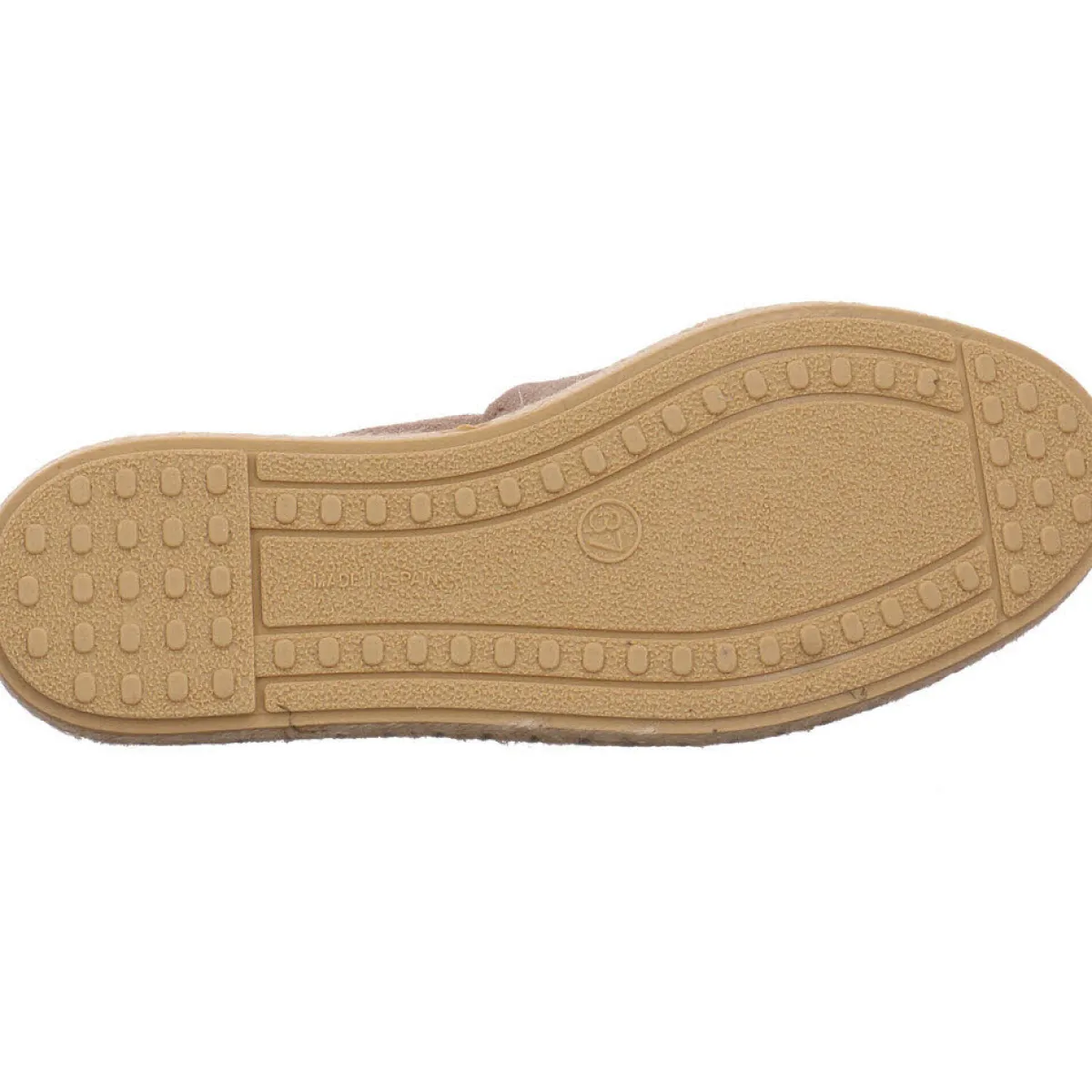 Die Fersenpartie ist innen mit einem Dehngummi versehen, womit eine gute Passform gewährleistet wird. Der Bastbesatz rund um die Sohle verleiht diesem absolut bequemen Slipper den letzten Schliff.