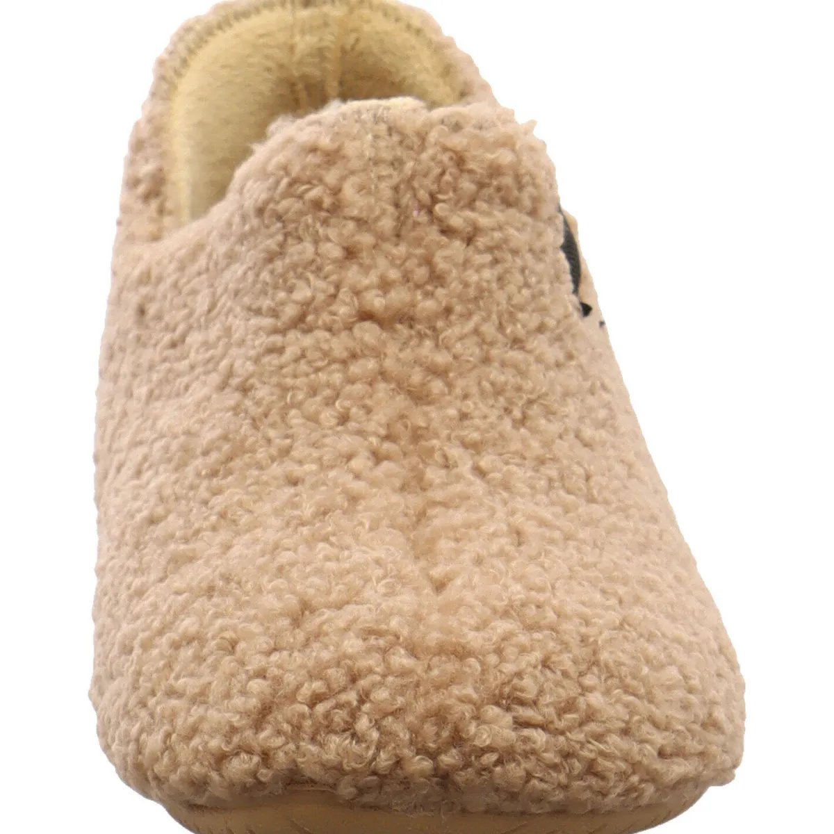 Das kuschelig weiche Textil Obermaterial in hellem Camel Braun hält die Füße auch im Winter garantiert warm und die Gummisohle bietet gleichzeitig einen sicheren Halt. Die Schnittführung sorgt für perfekten Halt am Fuß und verleiht dem Schuh einen modernen Look. Die flauschig weiche Innensohle sorgt für besonderen Tragekomfort.