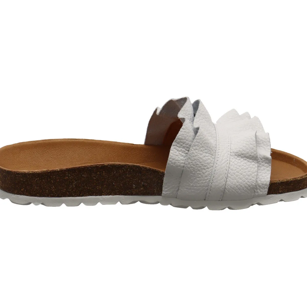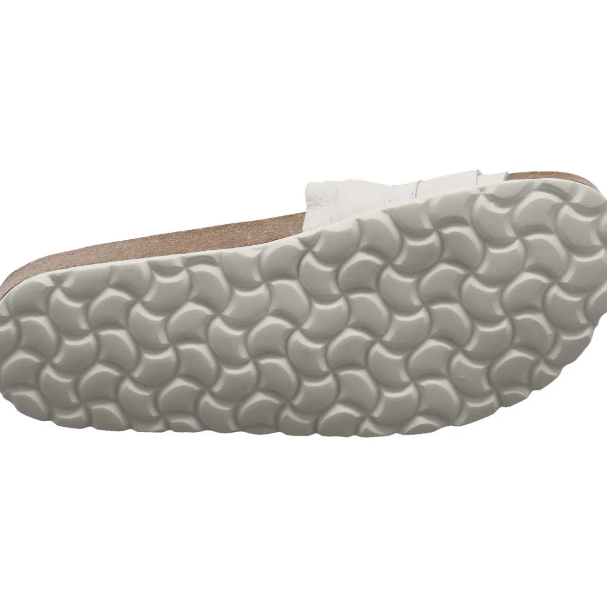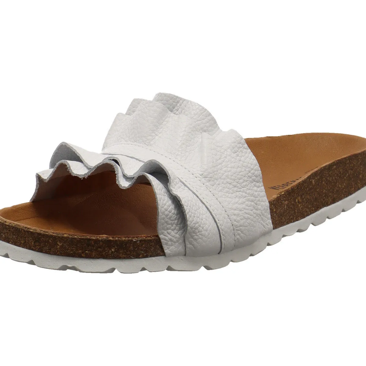 Gefertigt aus hochwertigem, grob genarbtem Echtleder in Weiß, macht der Schuh jeden Einsatz zuverlässig mit. Die tolle Faltenlegung des Riemen, fällt dabei sofort ins Auge. Für Komfort sorgt das anatomisch geformte Weichfußbett aus Echtleder mit Schaumeinlage.