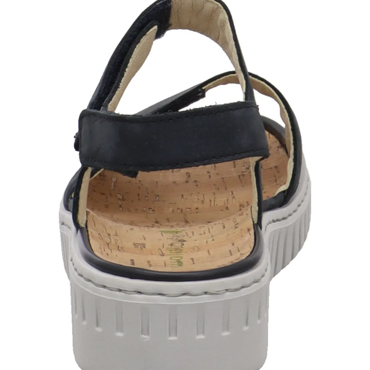 Sie wurde aus weichem Echtleder in Blau gefertigt. Durch den dreifach Klettverschluss ist der Einstieg ganz einfach und du kannst sie genau auf deine Bedürfnisse anpassen. Auf dem Knöchelriemen sind kleine Ziersteine angebracht. Die Kork Innensohle ist angenehm weich und der dezente Keilabsatz in Grau ist besonders bequem und flexibel.