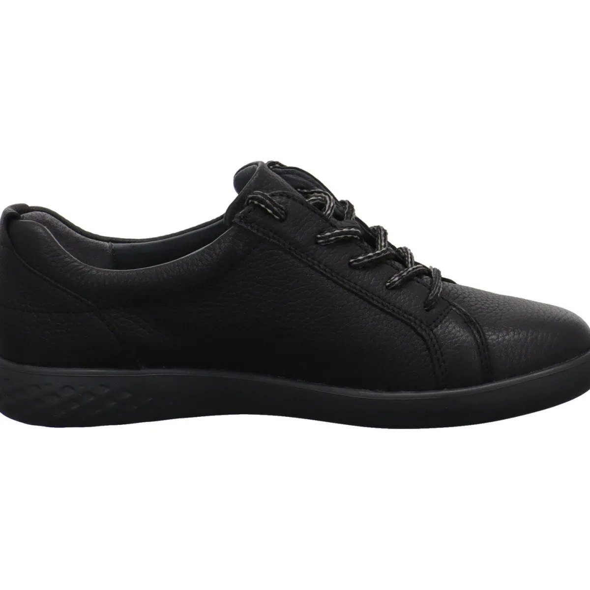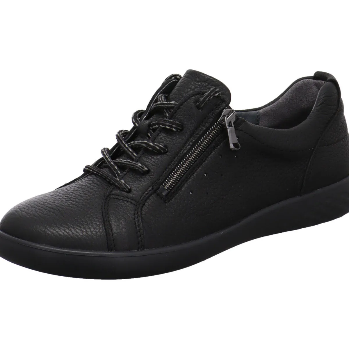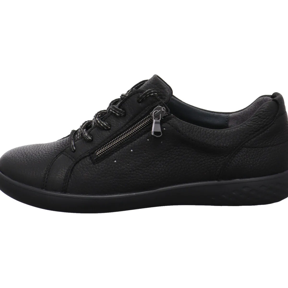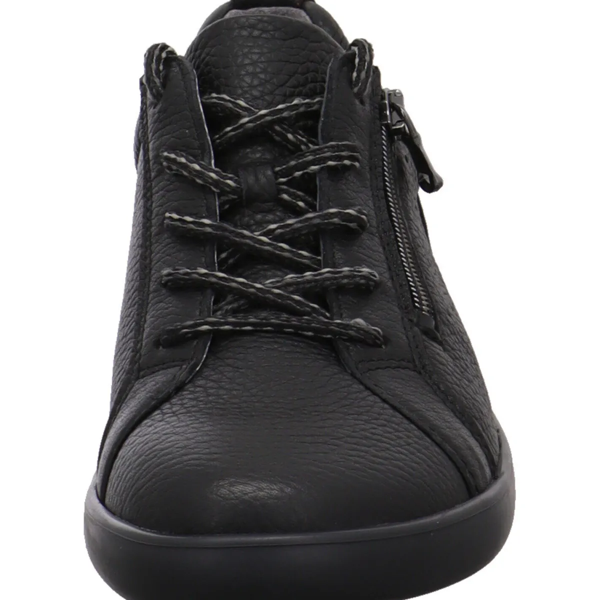 Das hochwertige Obermaterial wurde aus genarbtem Echtleder in Schwarz gefertigt.