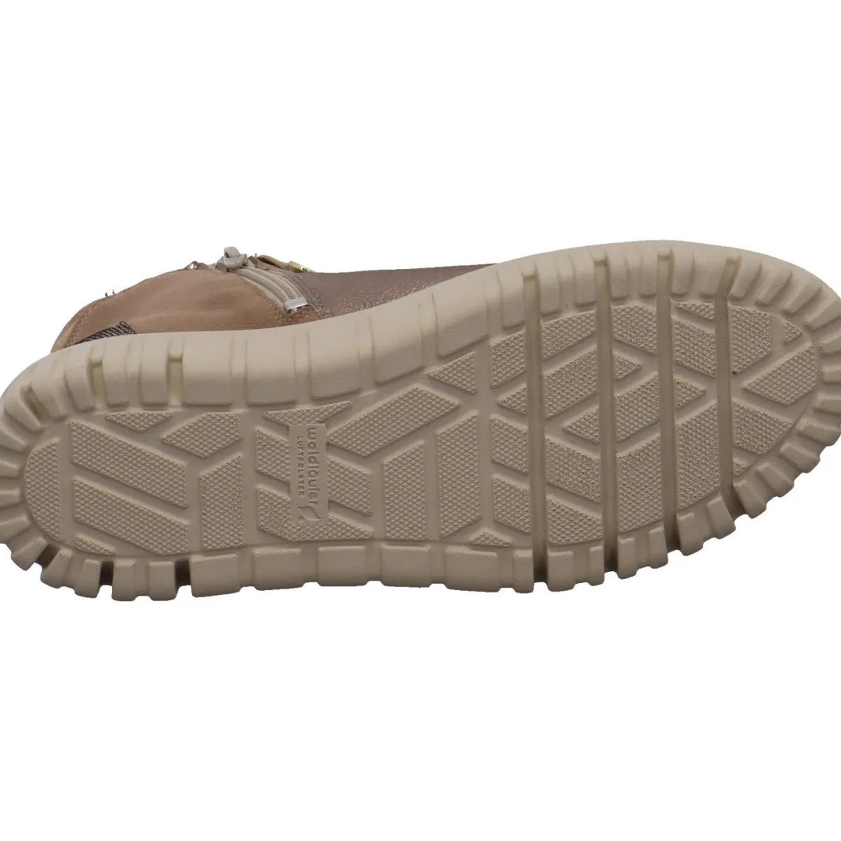 Das Modell H-Livia aus dem Hause Waldläufer überzeugt mit einem hochwertigen Obermaterial aus feinem Echtleder in Beige und auffallenden schimmernden Metallic Parts, die garantiert Blicke auf sich ziehen.