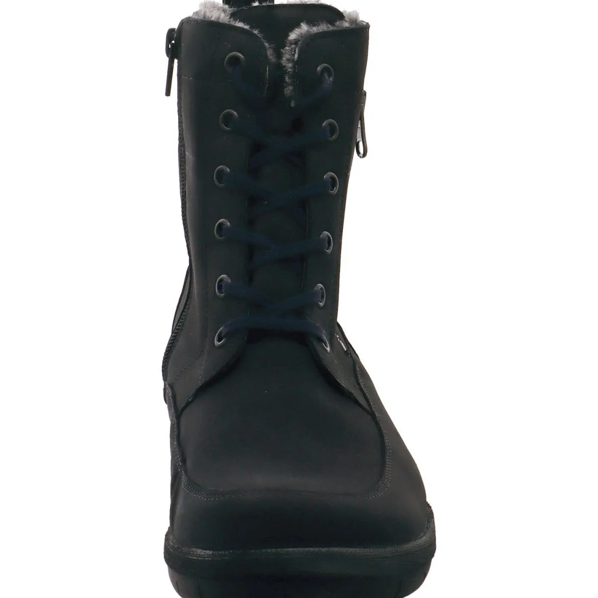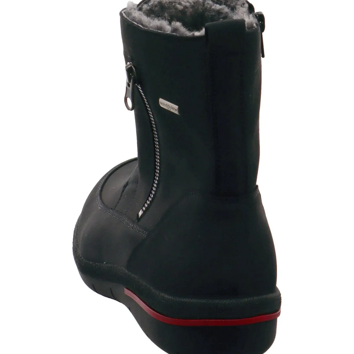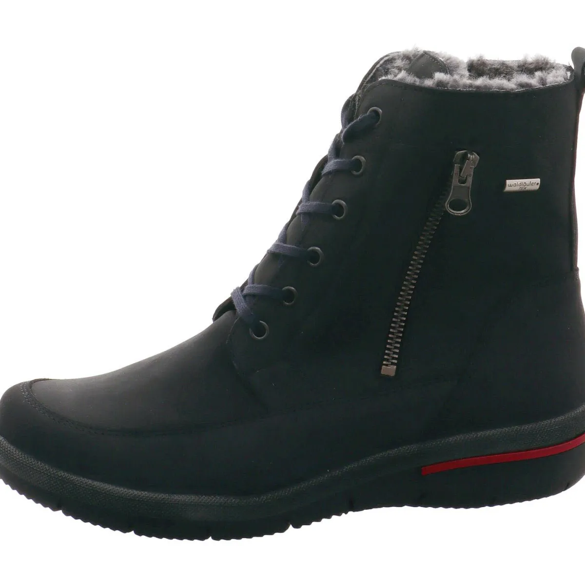 Der aus weichem und hochwertigem Nubukleder gefertigte Schuh bietet absoluten Komfort beim Gehen durch das gepolsterte Wechselfußbett und die Schuhweite H. Die leicht profilierte Laufsohle sorgt für guten Grip und die Schnürung in Komination mit dem seitlichen Reißverschluss garantieren einen leichten Einstieg. Der seitliche Zierreißverschluss und das Detail an der Ferse in Rot, runden das sonst schlichte Design gekonnt ab. Die integrierte Waldläufer Tex Membran macht den Schuh ausgesprochen wasserabweisend und atmungsaktiv.