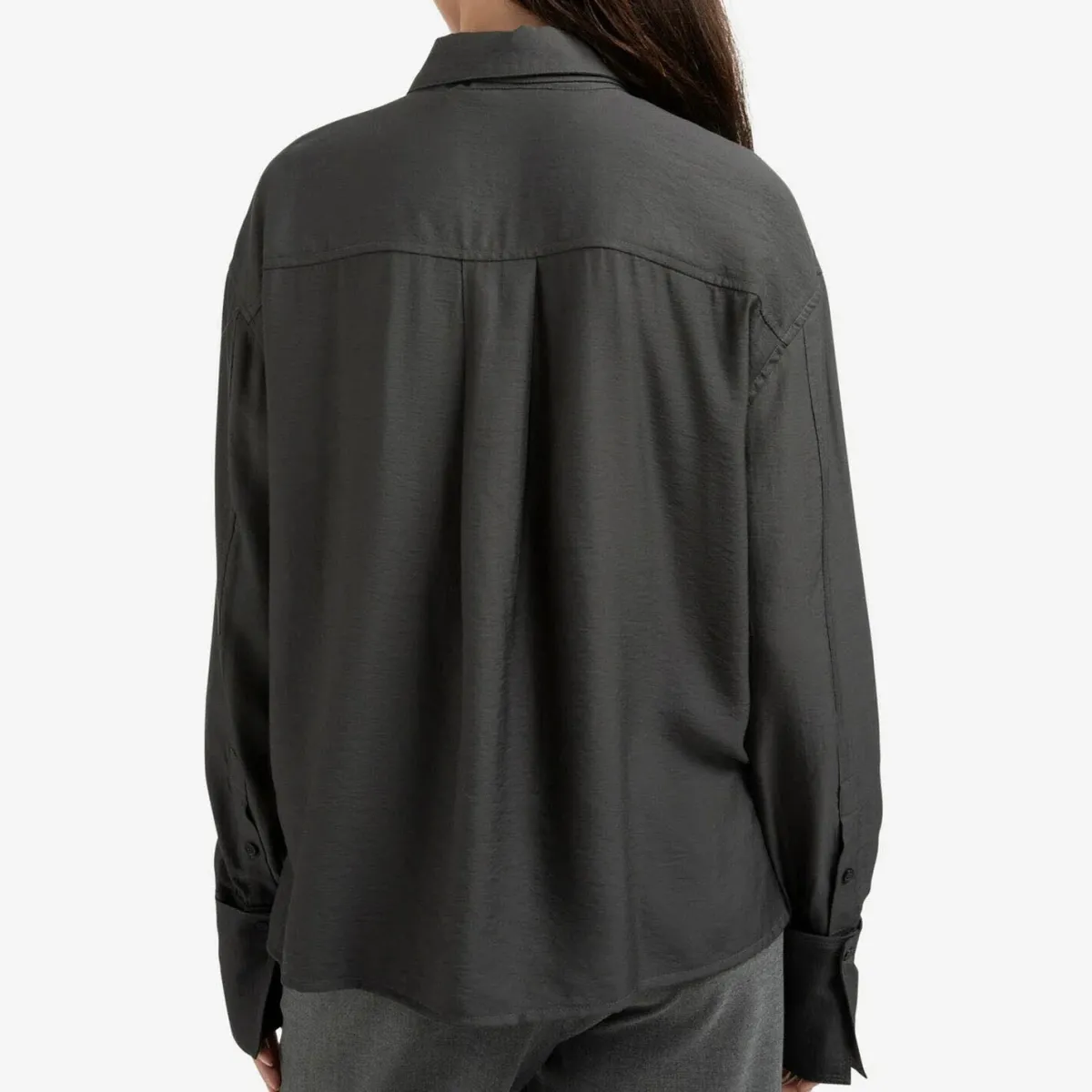 Diese ist jedoch mit zwei besonderen Funktionen ausgestattet. So kannst du den klassischen Kragen abnehmen und erhälst einen kleinen Stehkragen und auch die Manschetten der langen Ärmel lassen sich abnehmen. So veränderst du die Bluse komplett in ihrer Optik entsprechend dem Anlass. Sie verfügt außerdem über eine verdeckte Knopfleiste und ist am Rücken mit einer Pliseefalte gearbeitet. In Verbindung mit der lockeren Passform, hast du einen tollen Tragekomfort.