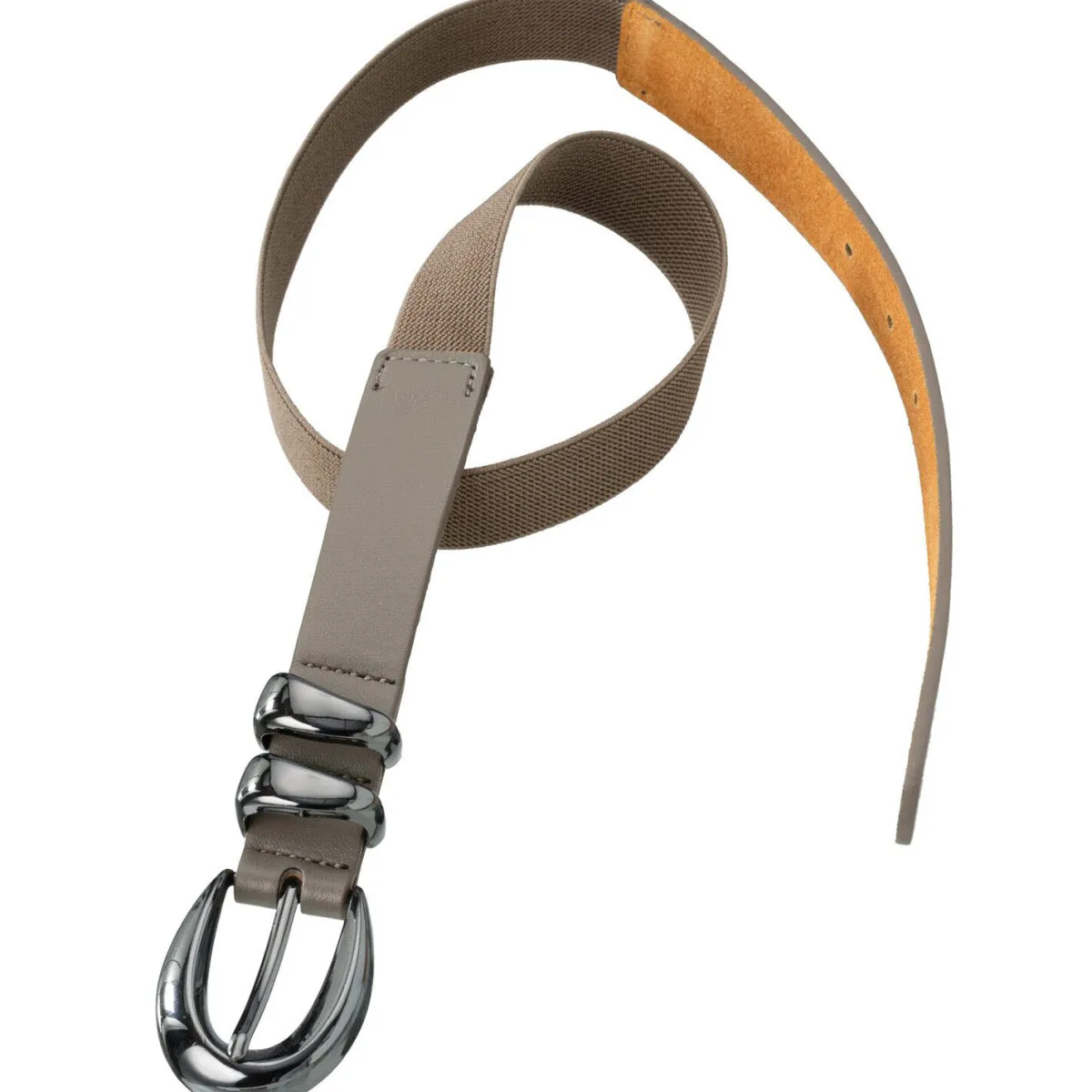 Der Gürtel hat eine modische Optik durch die Kombination aus Leder und Textil. Ein Hingucker ist dabei das Schnallendetail in Silber. Er hat eine verstellbare Passform und du kannst ihn super mit einem Kleid oder einer Bluse Tragen um die Taille zu betonen.