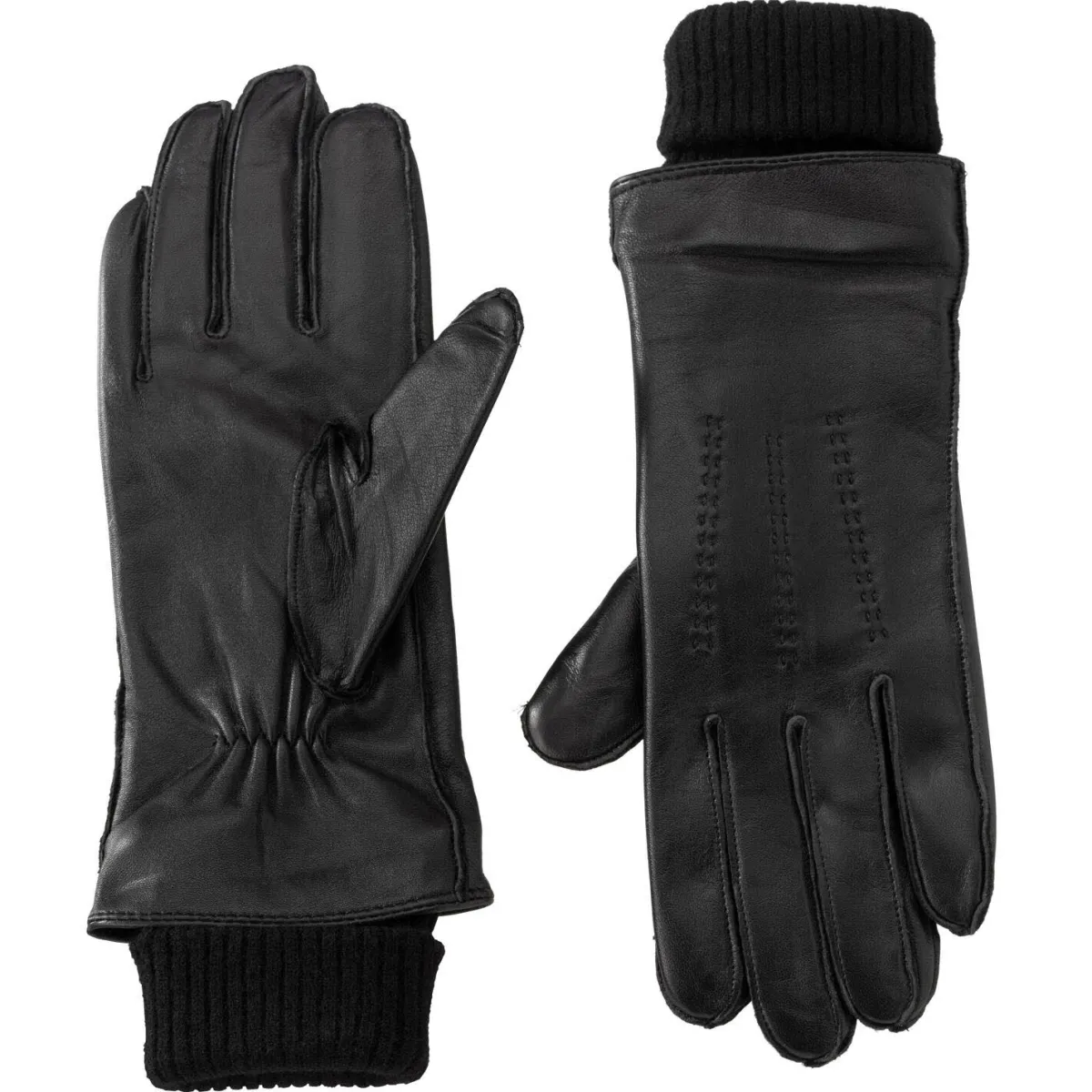 Leather gloves with knitted cuffs