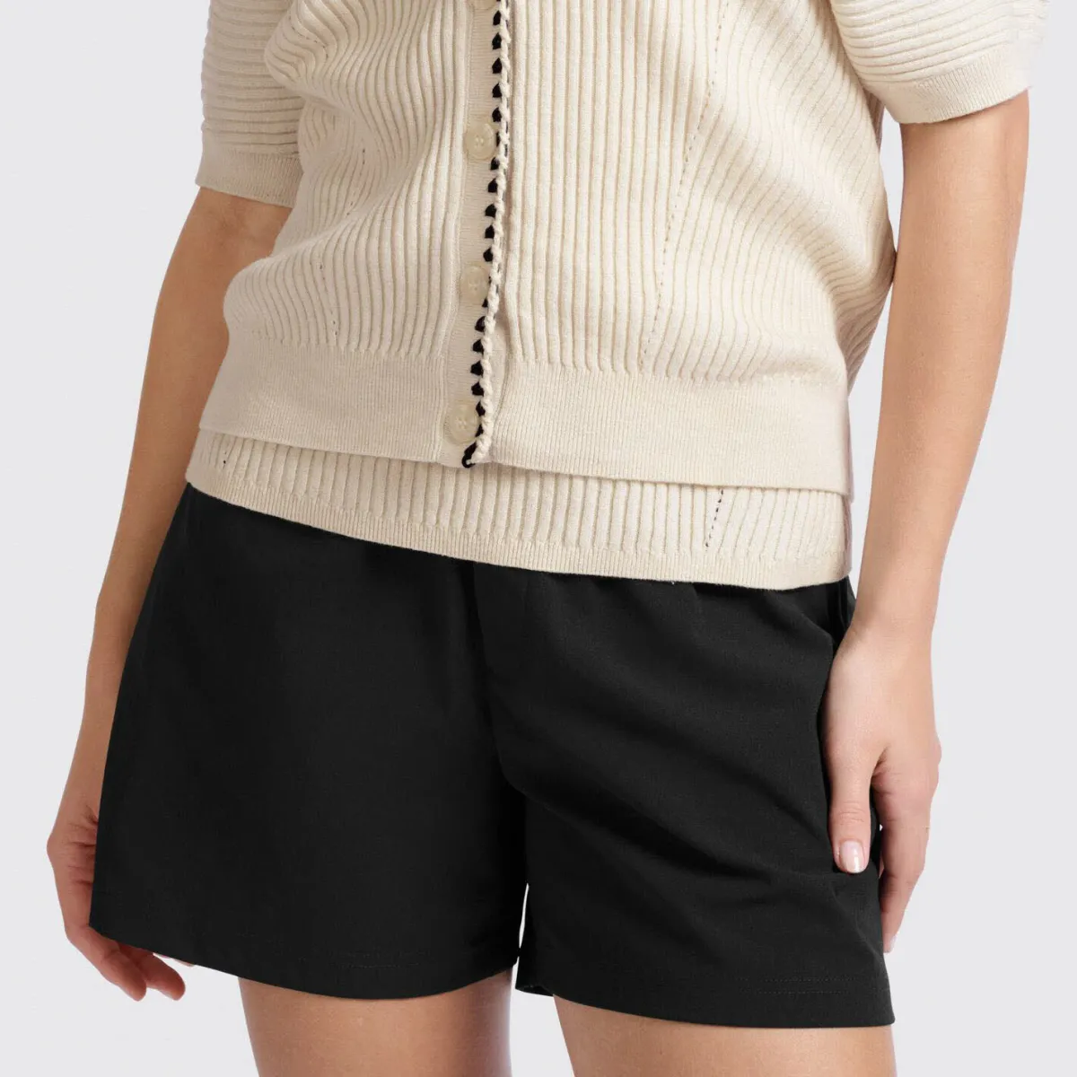 Die Short ist mit einem elastischen Bund gearbeitet und hat eine lockere, luftige Passform. Sie ist an den Seiten mit Reißverschlusstaschen gearbeitet, diese sind praktisch und modisch zugleich.