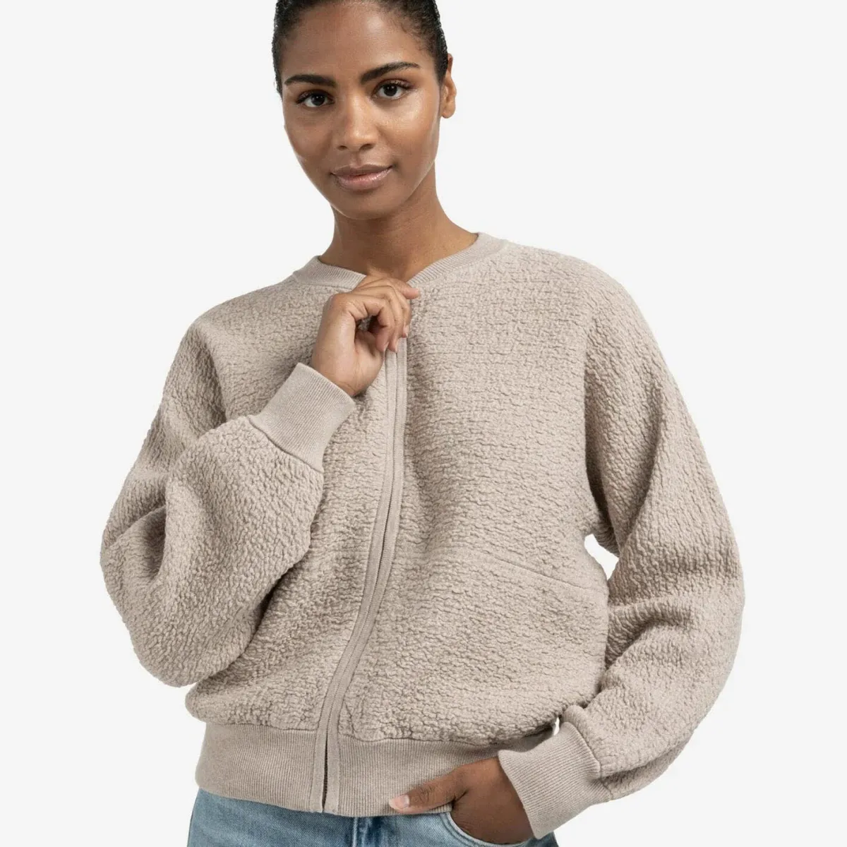 Textured knitted bomber ls