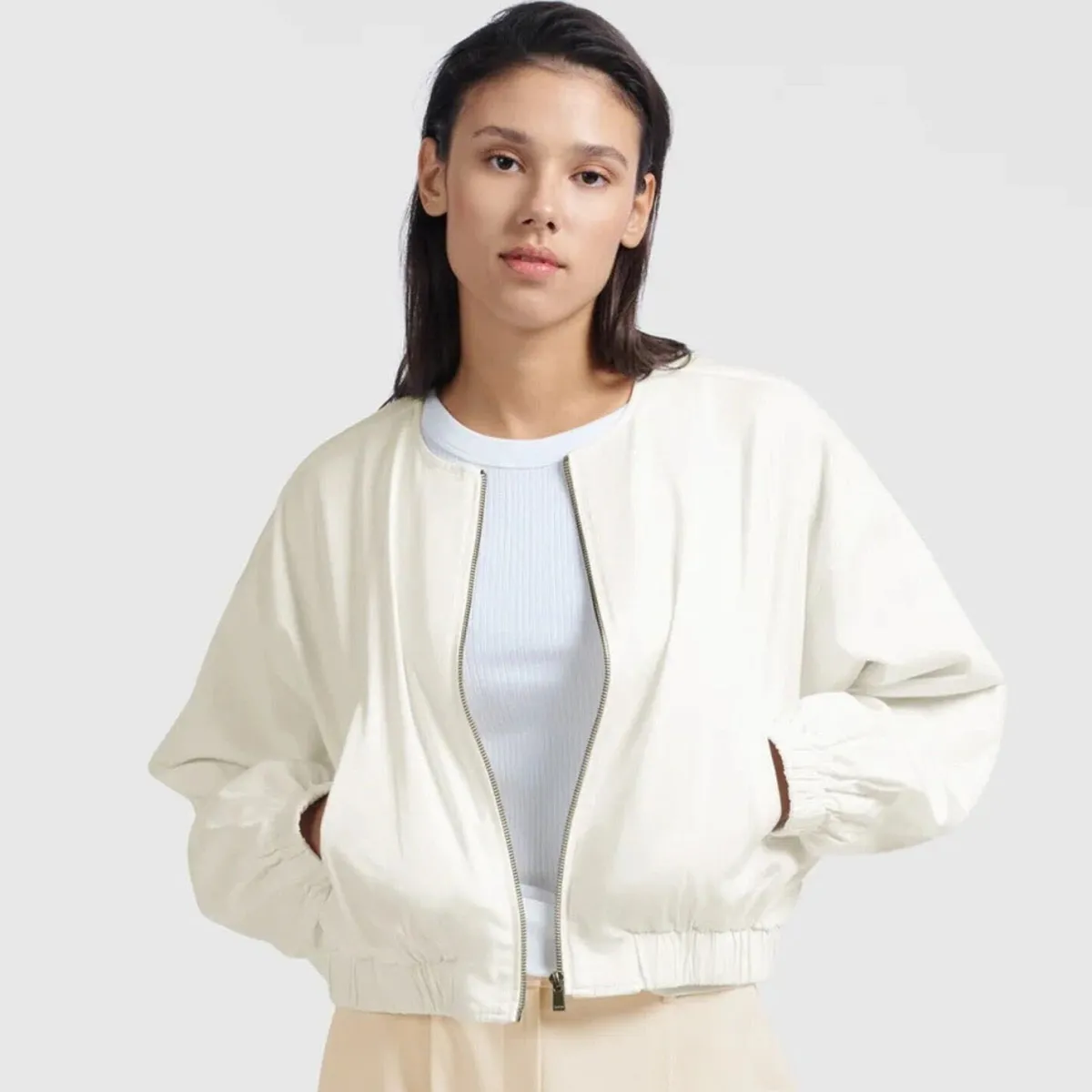 Woven cropped bomber jacket