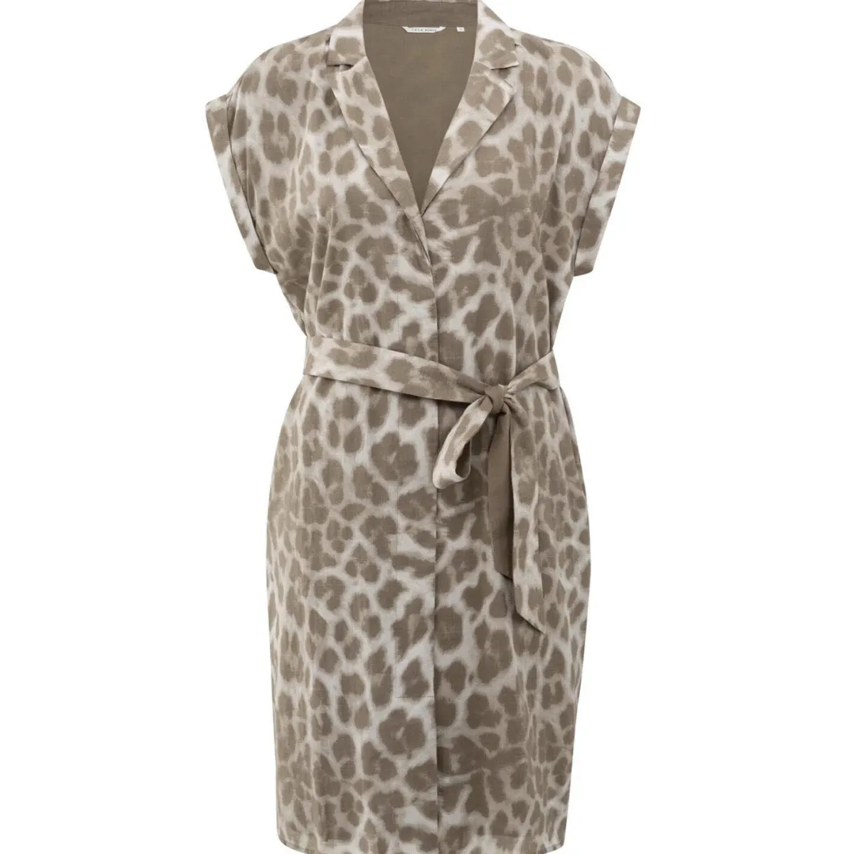 Der Stoff aus Baumwolle ist mit einem stylischen Leo Animal Print versehen. Es hat eine normale Passform und einen Reverskragen. Die kurzen Ärmel sind mit kleinen Bündchen versehen und der abnehmbare Bindegürtel betont die Taille.
