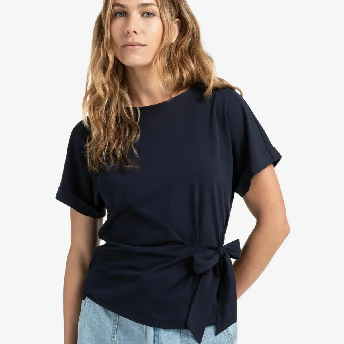 Round neck top with knotted detail