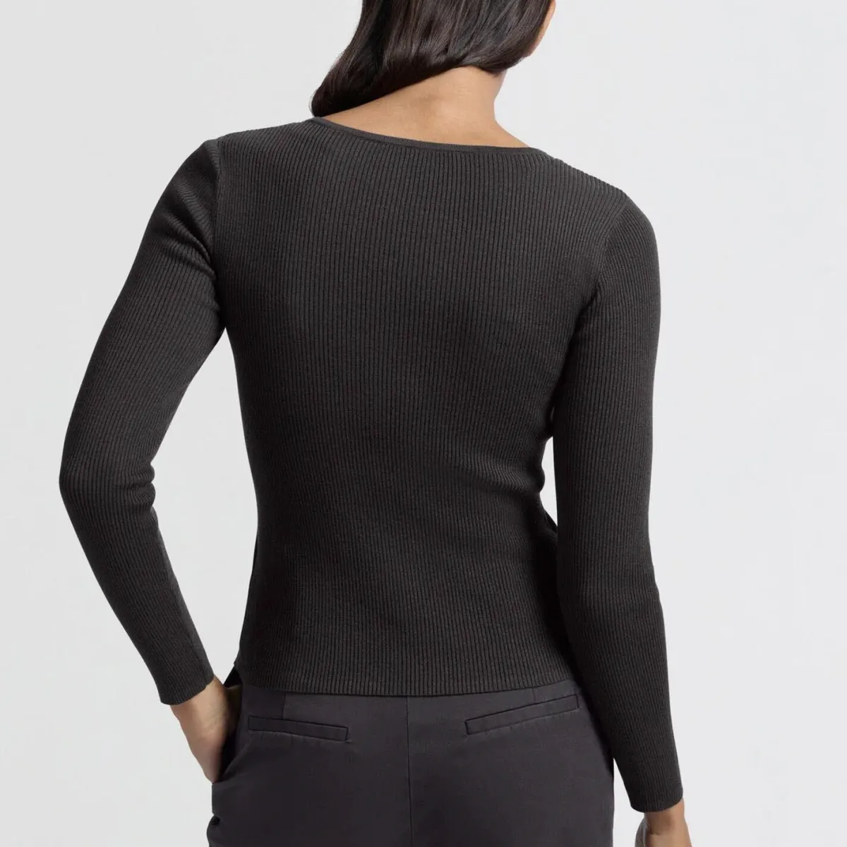 Rib stitch fitted sweater with buttons
