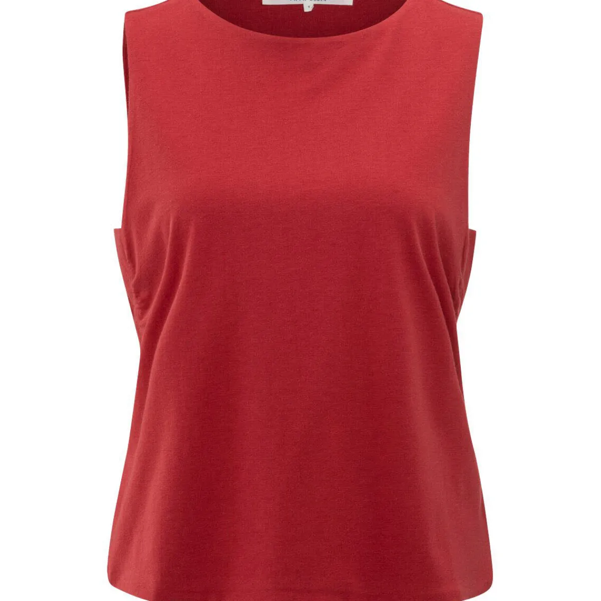 Der weiche gewebte Stoff ist natürlich in unserer Lieblingsfarbe Rot. Das Top ist mit einem Rundhalsausschnitt gearbeitet und an den Seiten raffinierte Cutouts. Diese sorgen für einen besonderen Look.