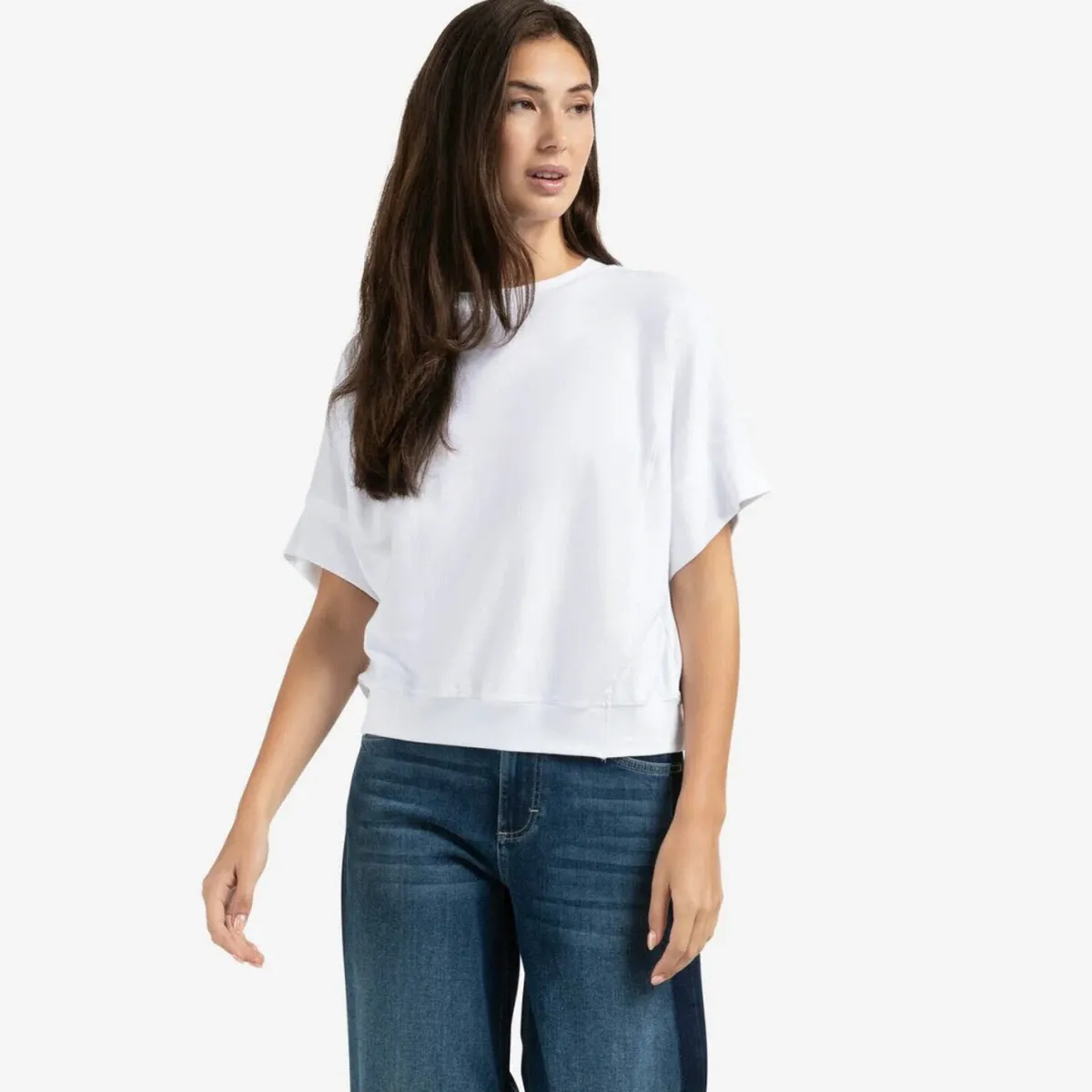 Der Stoff in Weiß, ist besonders weich und durch die weite Schnittform angenehm zu tragen. Du kannst es lässig einzeln tragen oder im Lagenlook kombinieren.