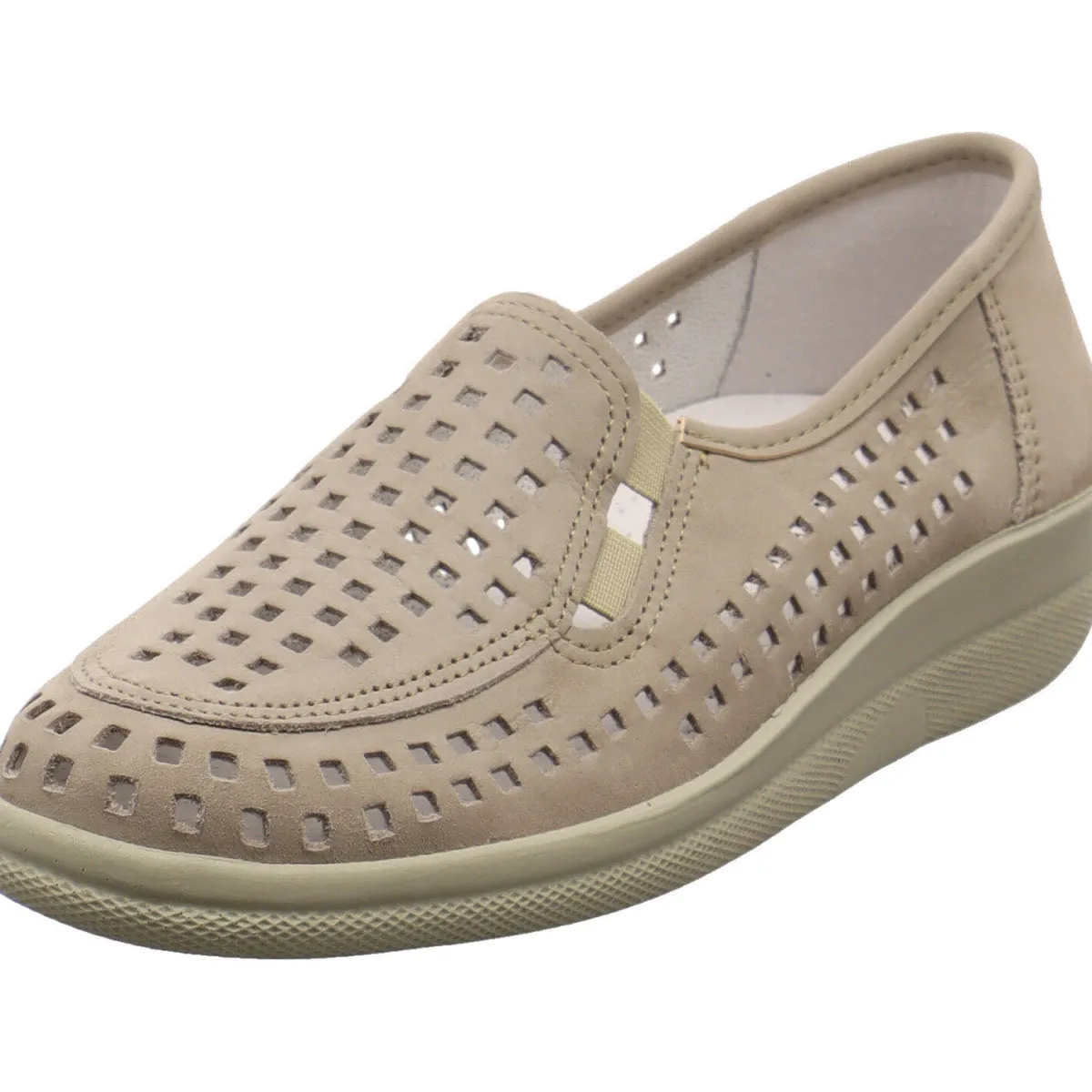 Der flache Keilabsatz und die leicht profilierte Synthetiklaufsohle runden das Gesamtkonzept ab.