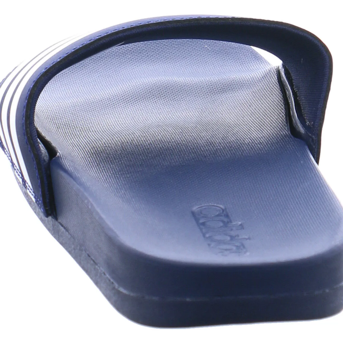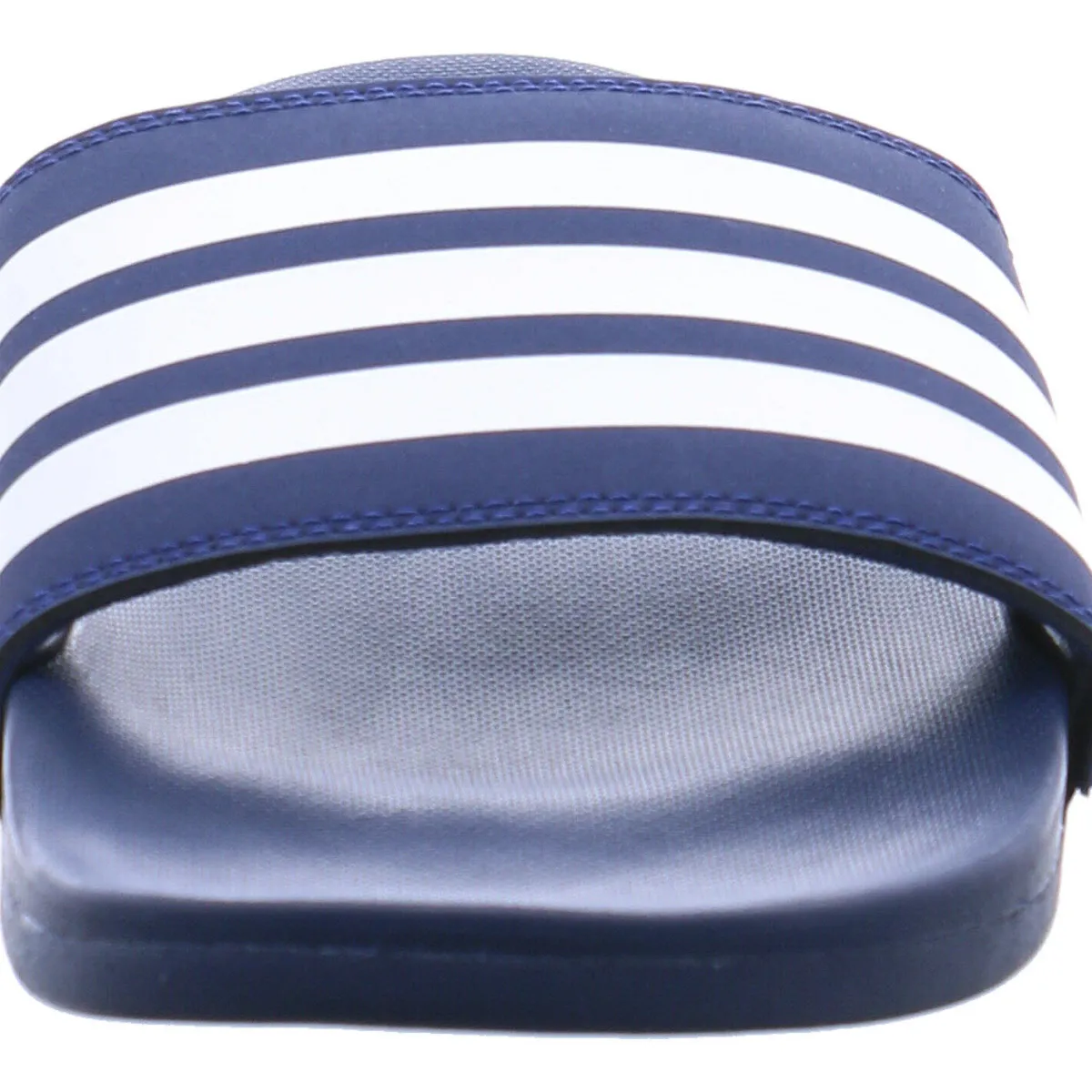 Besonders weich und flexibel begeistert der Slide in vielseitigem Blau mit drei Streifen in Weiß und macht das Tragen ausgesprochen angenehm.