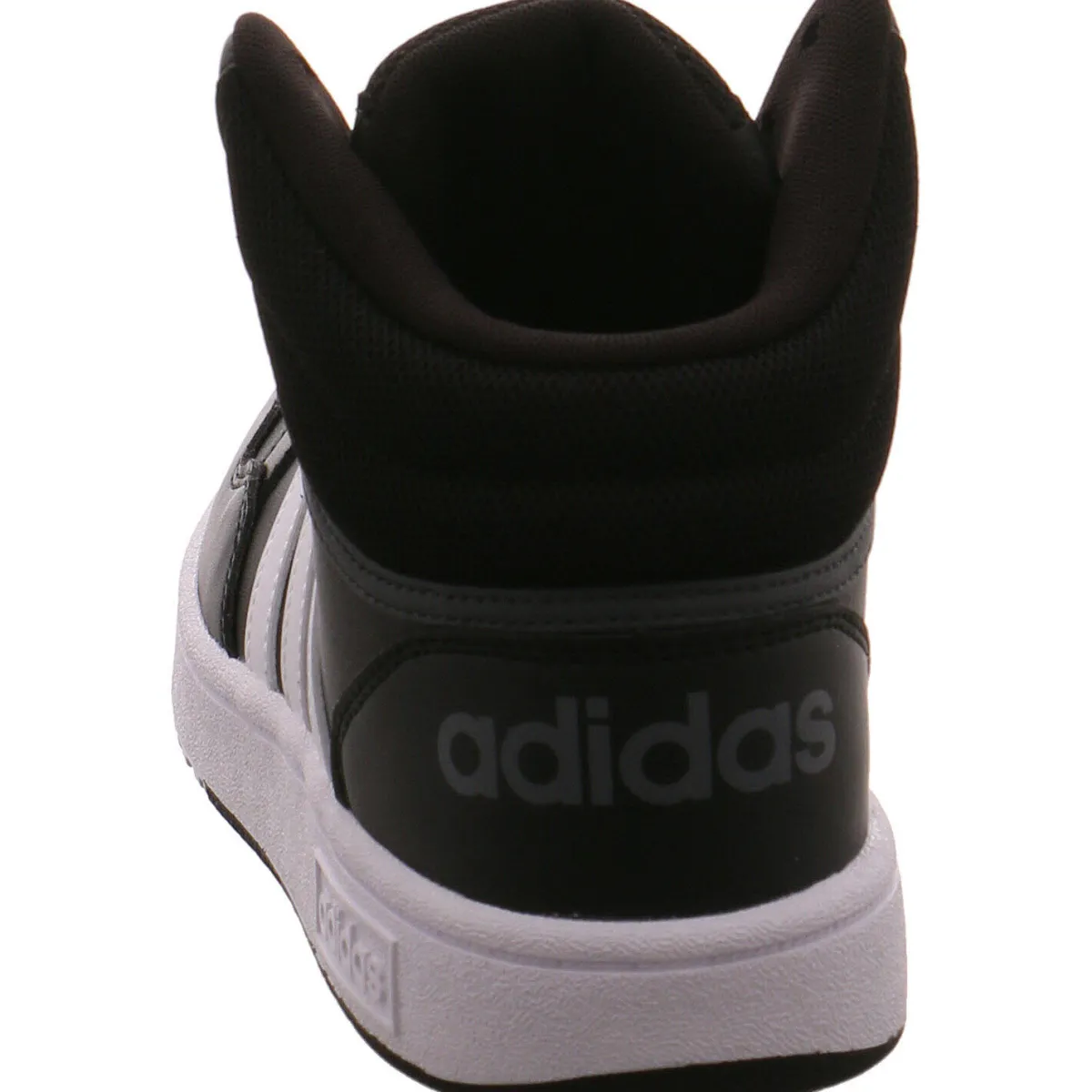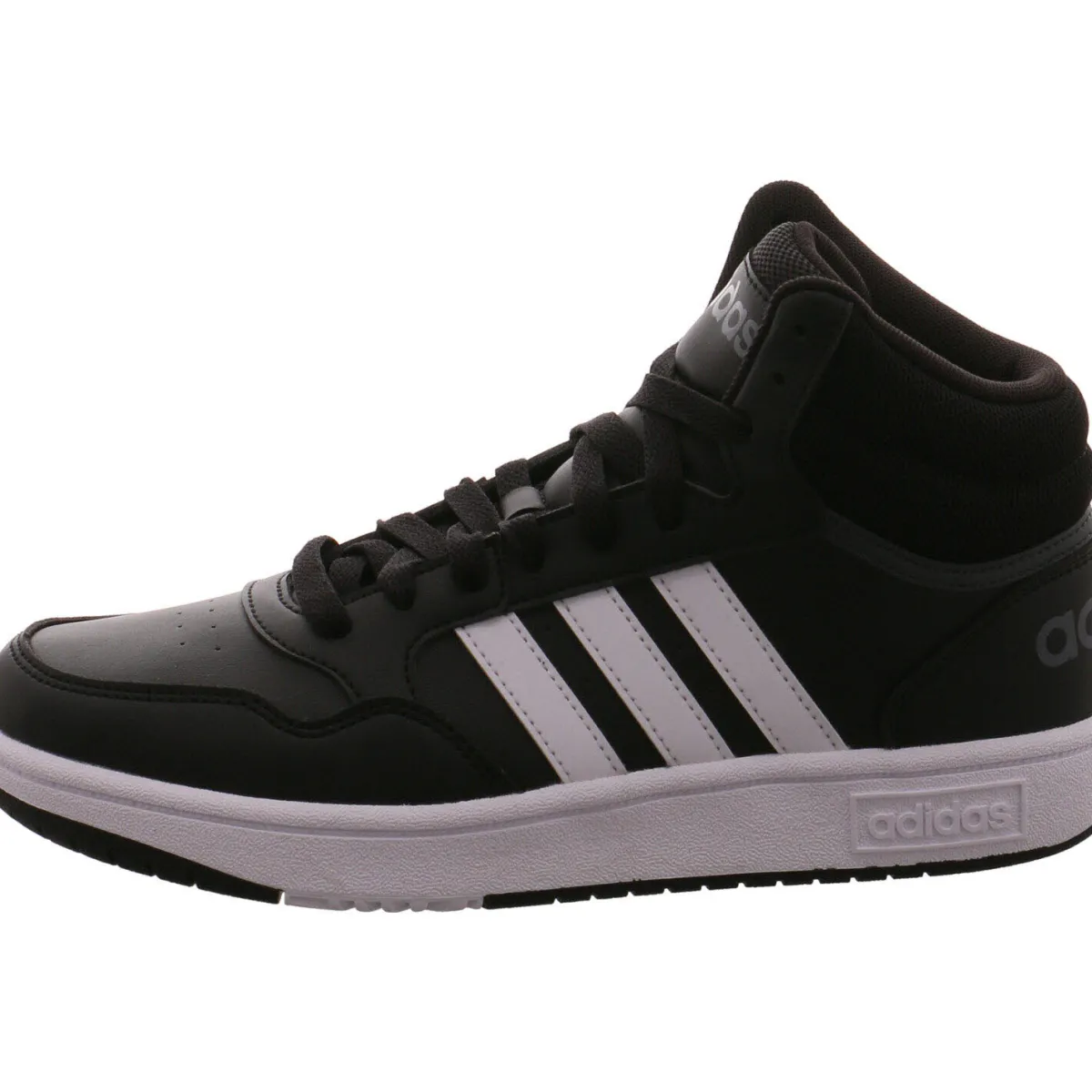 Das Obermaterial aus Kunstleder und Textil in Schwarz ist an den Seiten mit den klassischen drei Streifen in Weiß versehen. Der Schaft ist aus flexiblem Mesh, angenehm gepolstert und die Laufsohle ist farblich abgesetzt und gibt dem Schuh seinen typischen Sneaker Look.