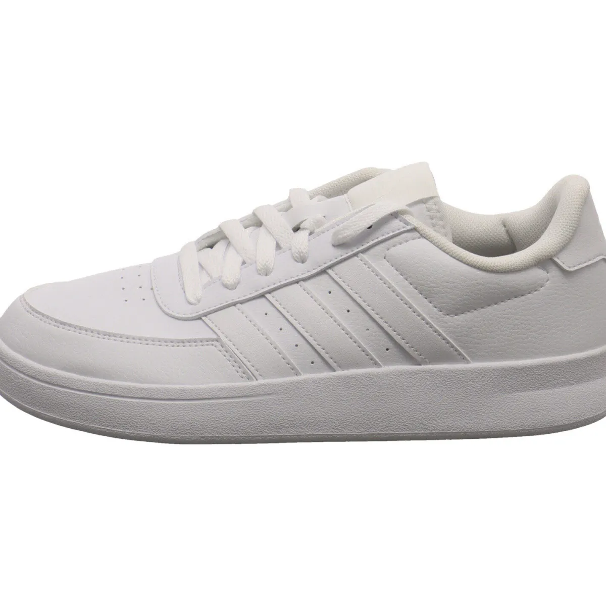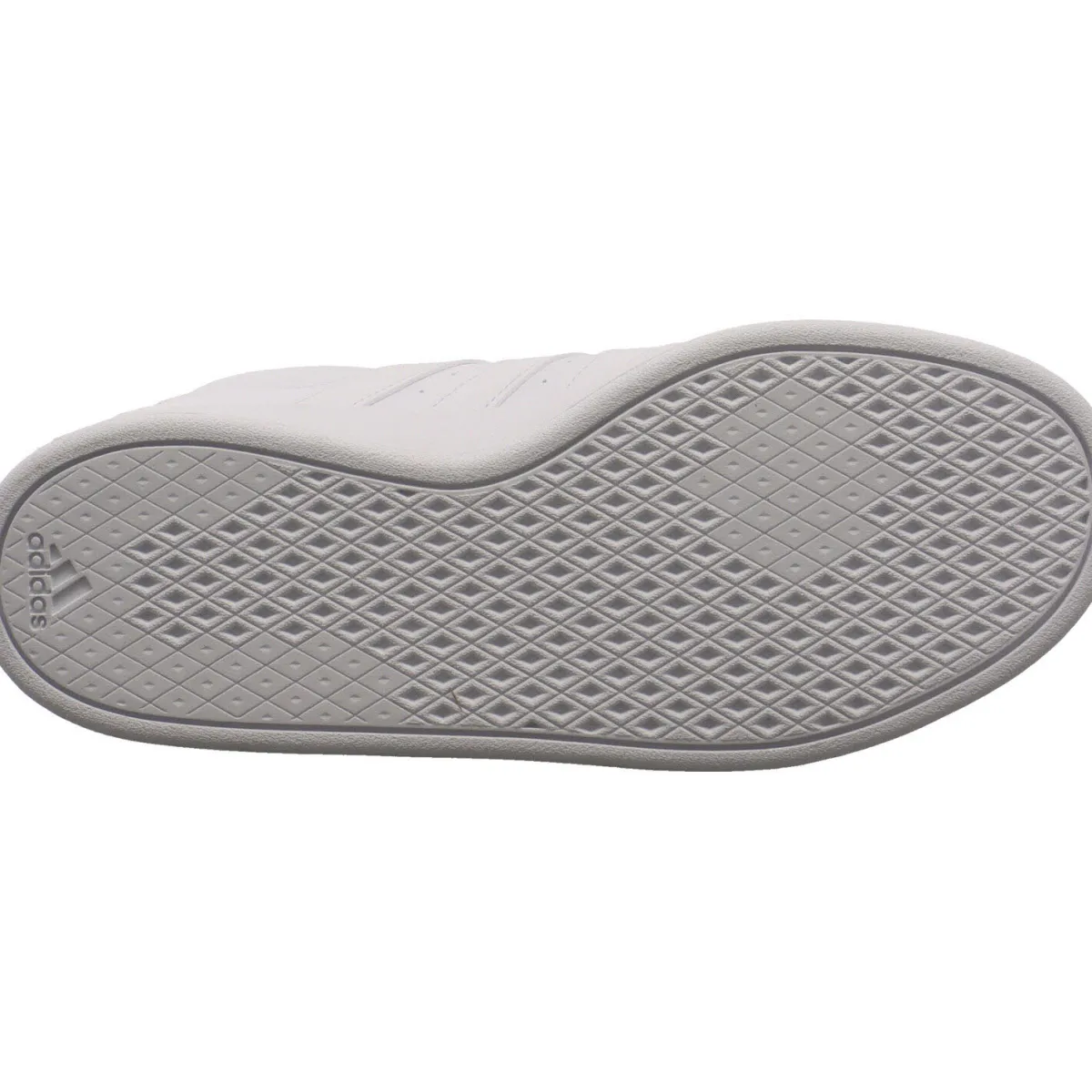 Das Obermaterial aus pflegeleichtem Kunstleder in Weiß, lässt sich gut kombinieren und wird durch die seitlichen drei Streifen und die Fersenkappe in Weiß optisch noch aufgewertet.