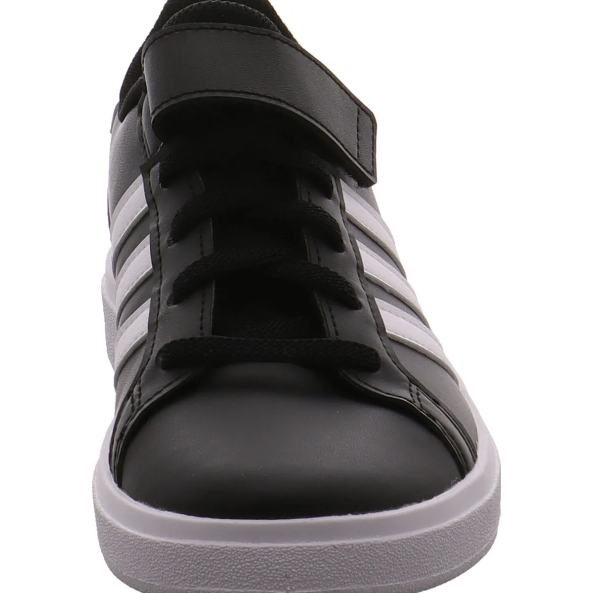 Das Obermaterial wurde aus pflegeleichtem Kunstleder in Schwarz gefertigt und wird durch die drei typischen Adidas Streifen in Weiß abgerundet.
