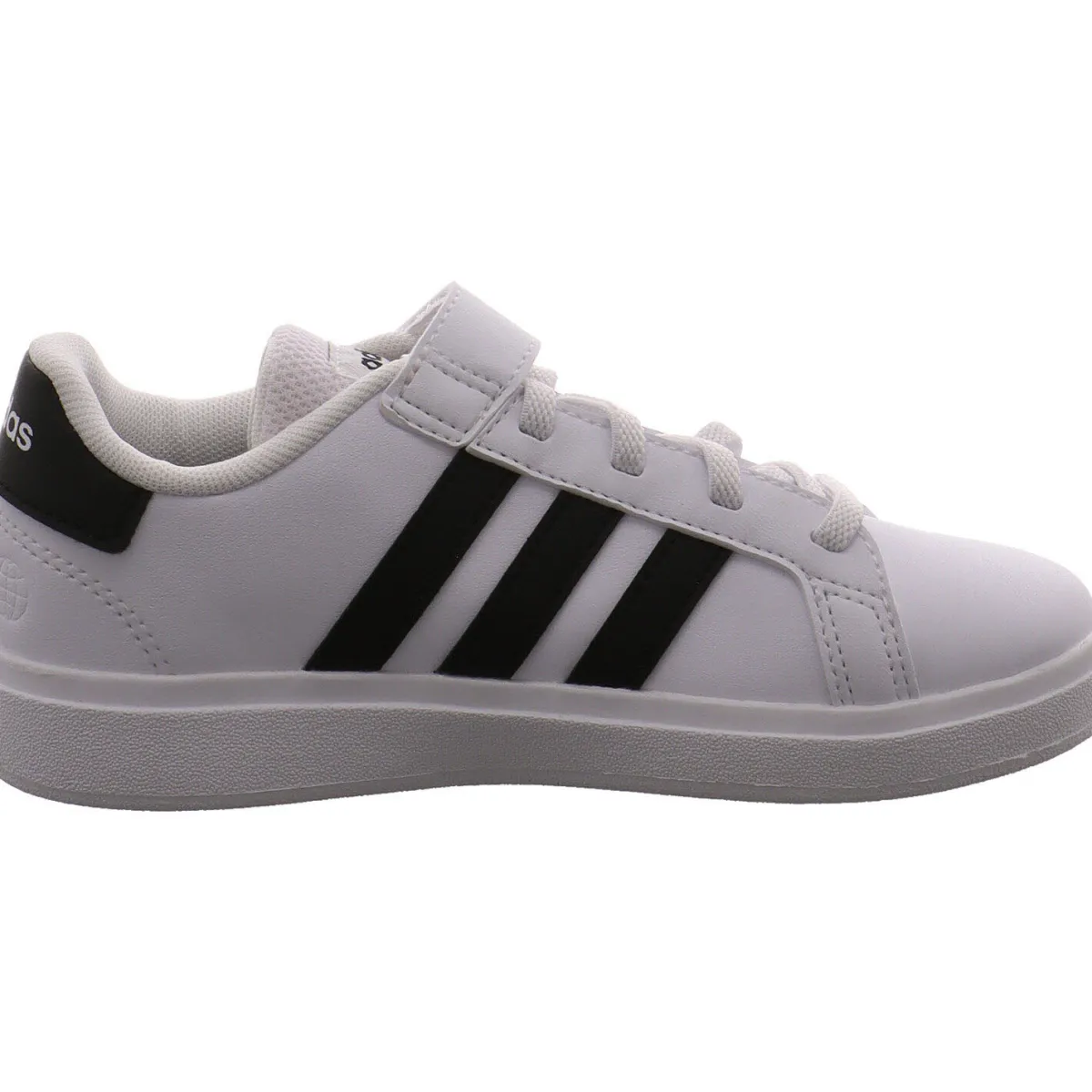 Das Obermaterial wurde aus pflegeleichtem Kunstleder in Weiß gefertigt und wird durch die drei typischen Adidas Streifen in Schwarz abgerundet.