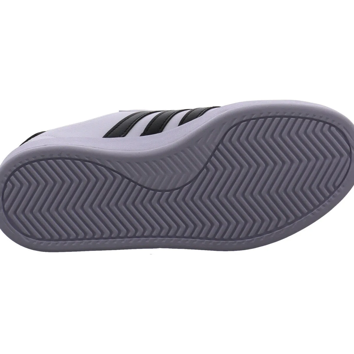 Das Obermaterial wurde aus robustem Kunstleder in klassischem Weiß gefertigt und wird durch die drei typischen Adidas Streifen in Schwarz abgerundet.