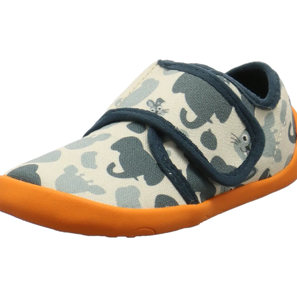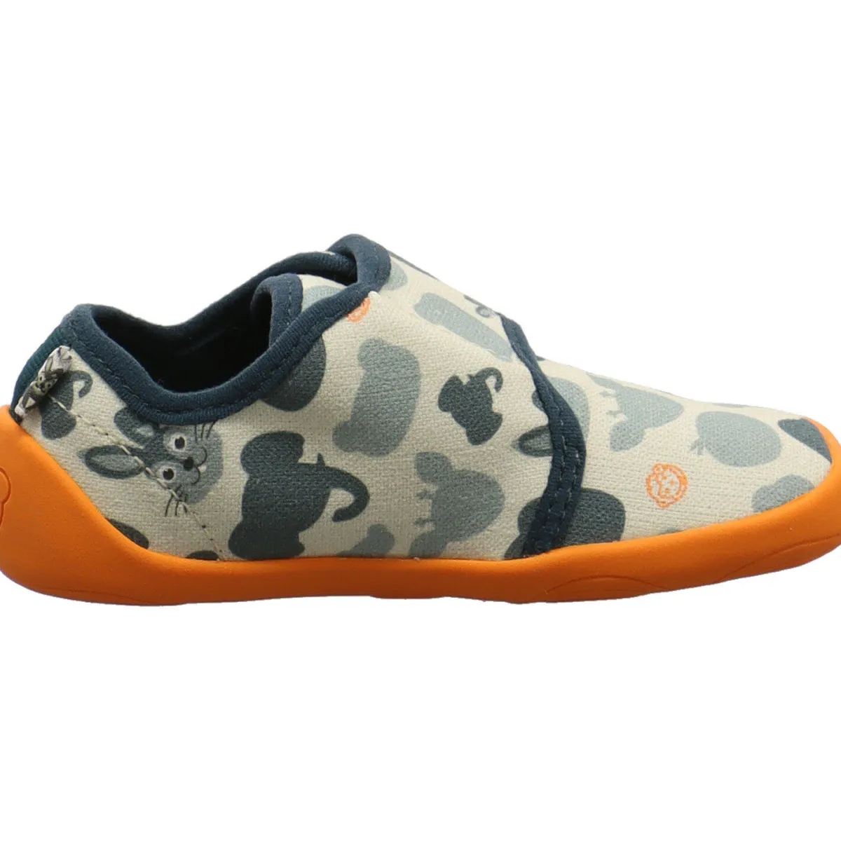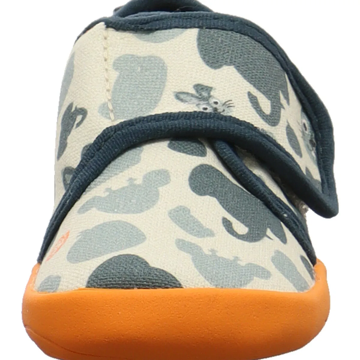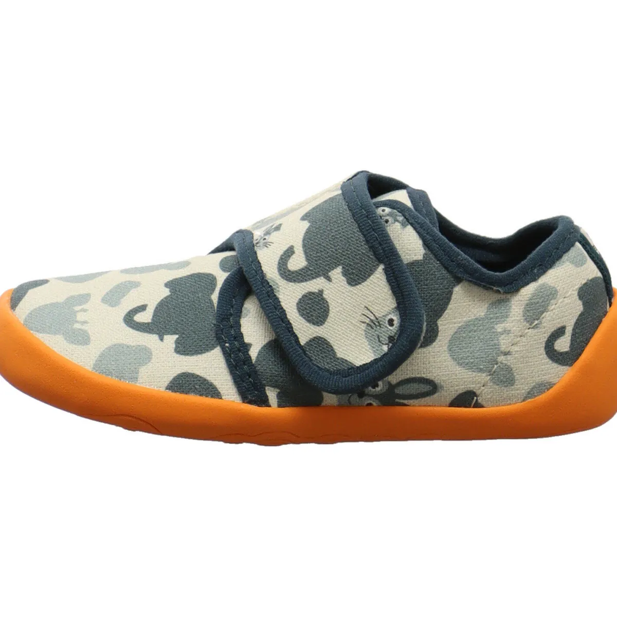 Gefertigt aus Bio Baumwolle in Grün ist das Modell Movy Hase mit einem süßen Print mit Tieren, wie einem Hase und einem Elefant verziert. Die farblich abgesetzte Laufsohle in Orange passt super zum Design.