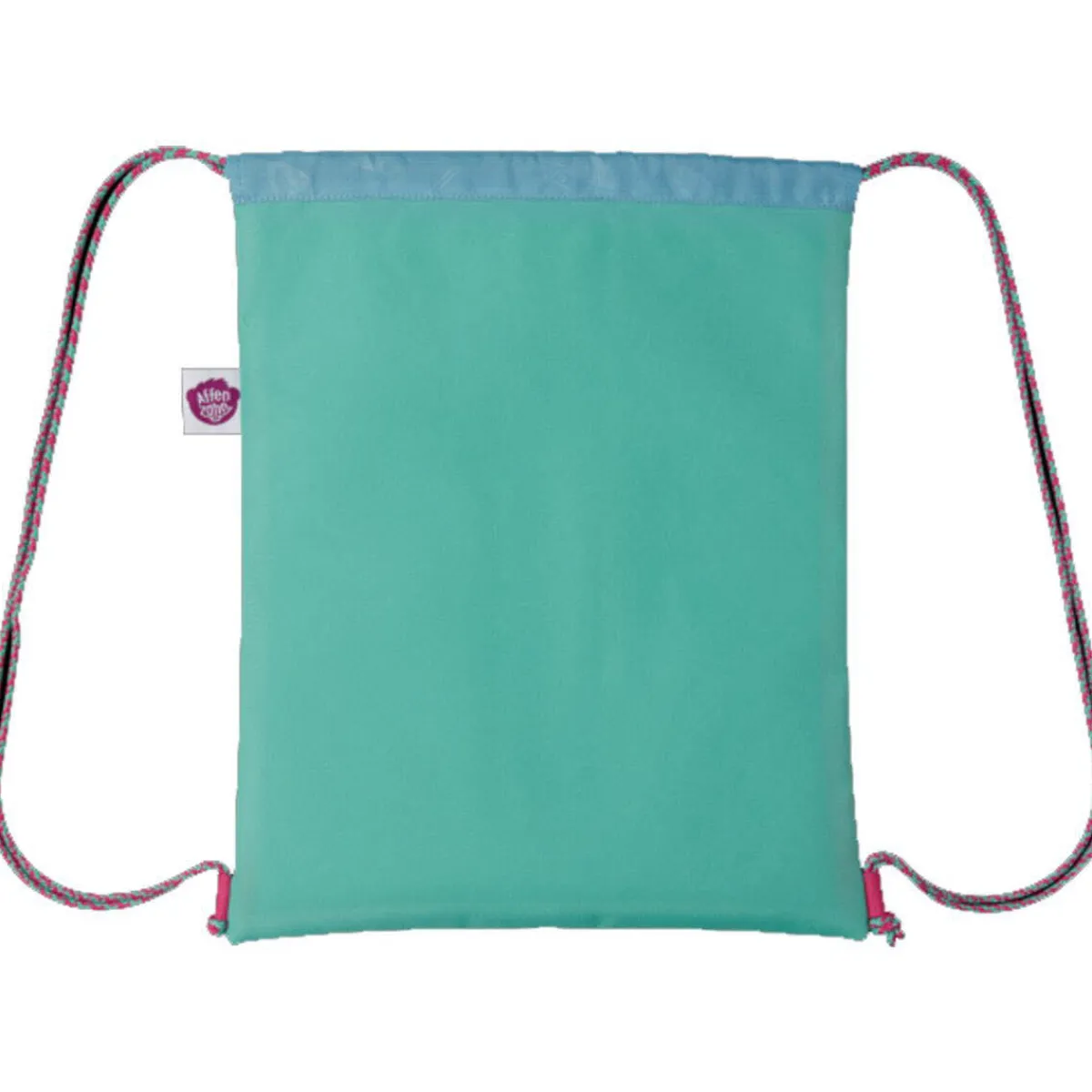 Der Turnbeutel besteht aus Textilien, die zu 50% aus recycelten PET Flaschen bestehen.