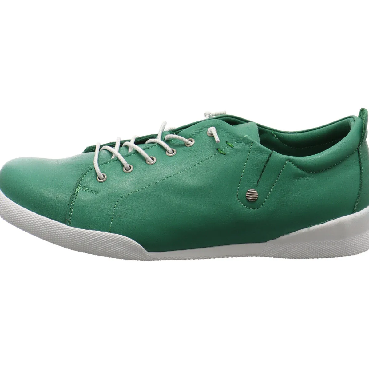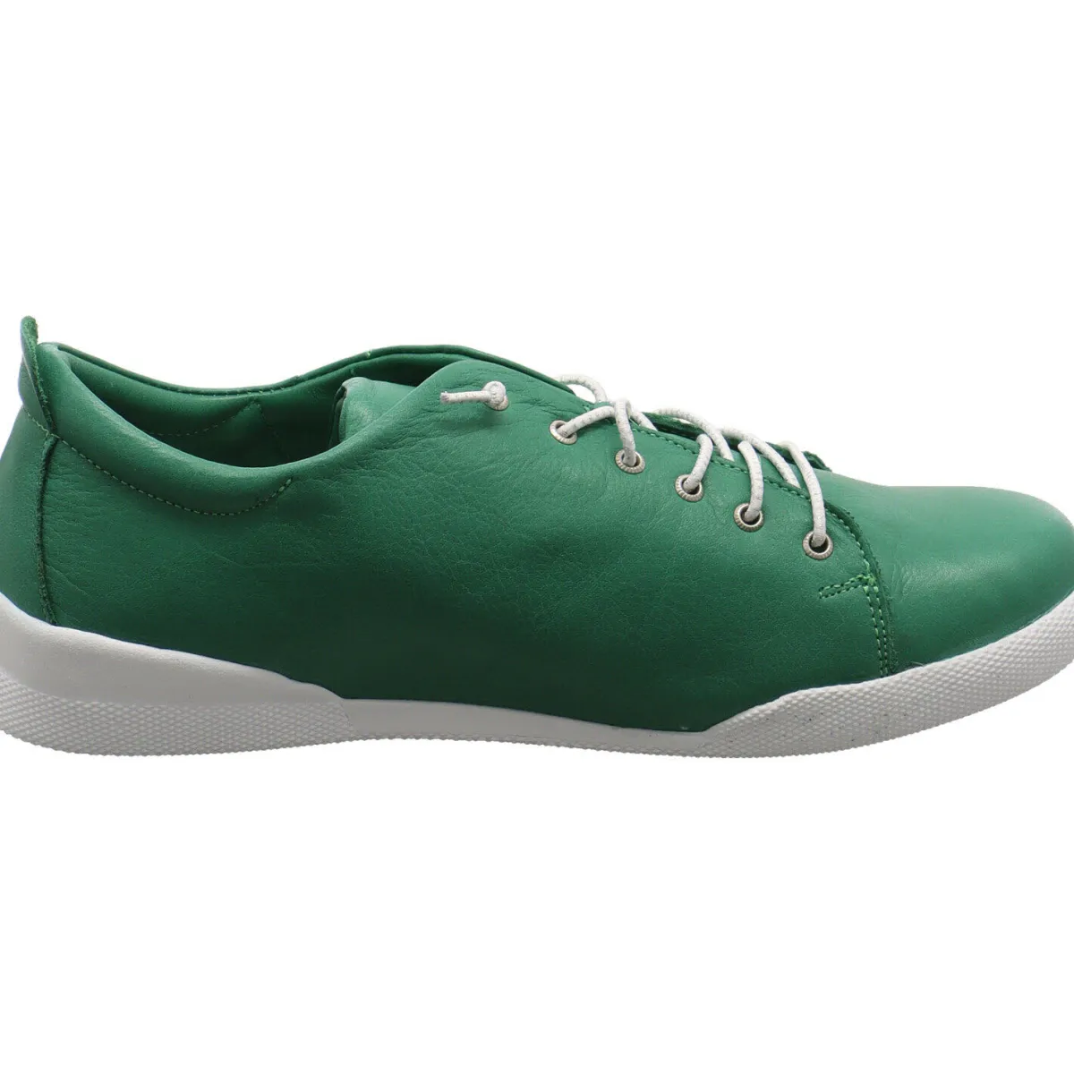 Gefertigt aus weichem und flexiblem Echtleder in Grün begeistert der Schuh durch die Gummischnürung mit eingearbeitetem Silberfaden und das herausnehmbare Wechselfußbett.