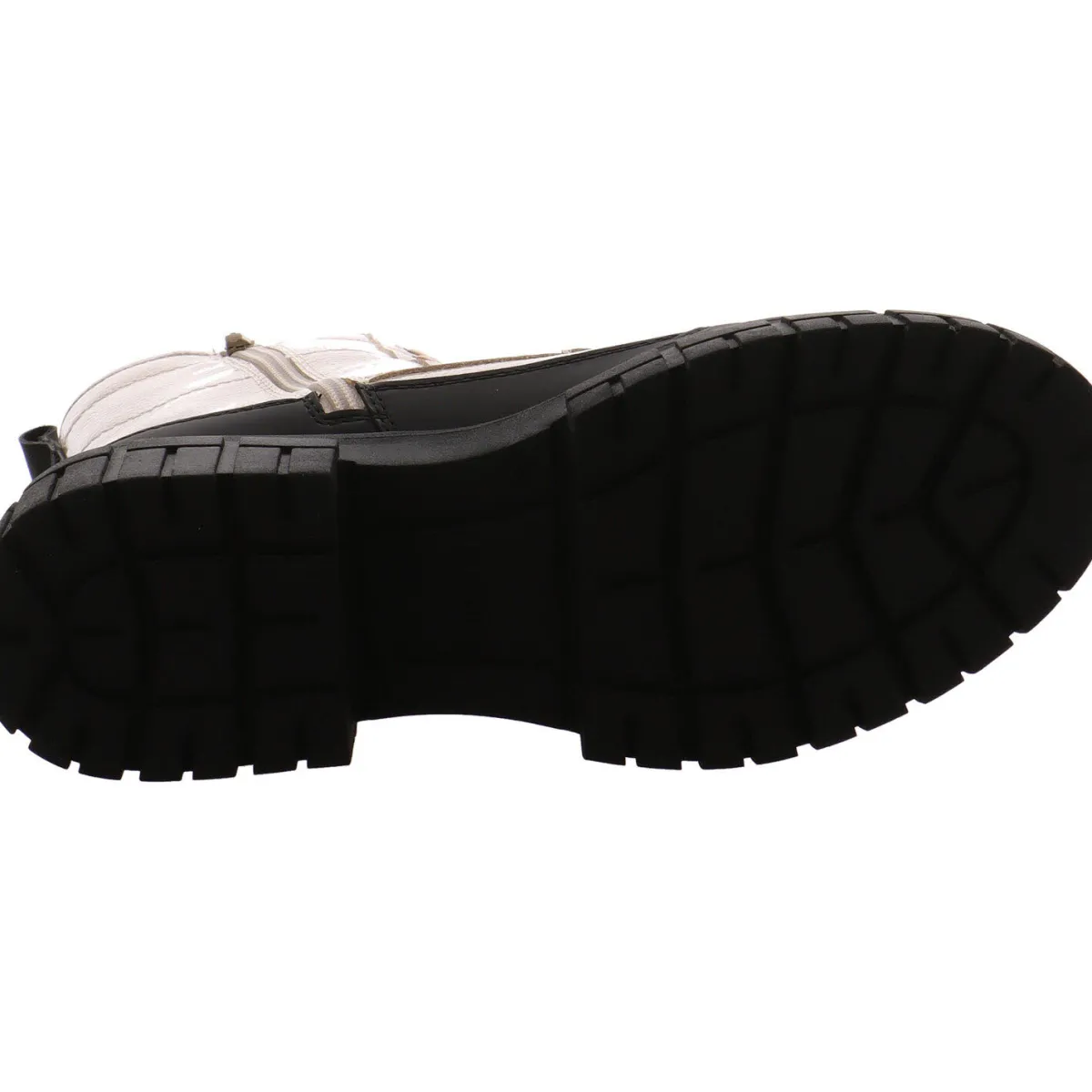 Gefertigt aus einem gekonnten Mix aus Kunstleder und Textil in Beige und Schwarz, wurde der Schuh mit einer Schnürung und einem Reißverschluss versehen, die für einen leichten Einstieg sorgen. Der Schuh ist komplett mit einer Umrandung in Schwarz versehen, die ihn besonders robust und stoßfest macht.