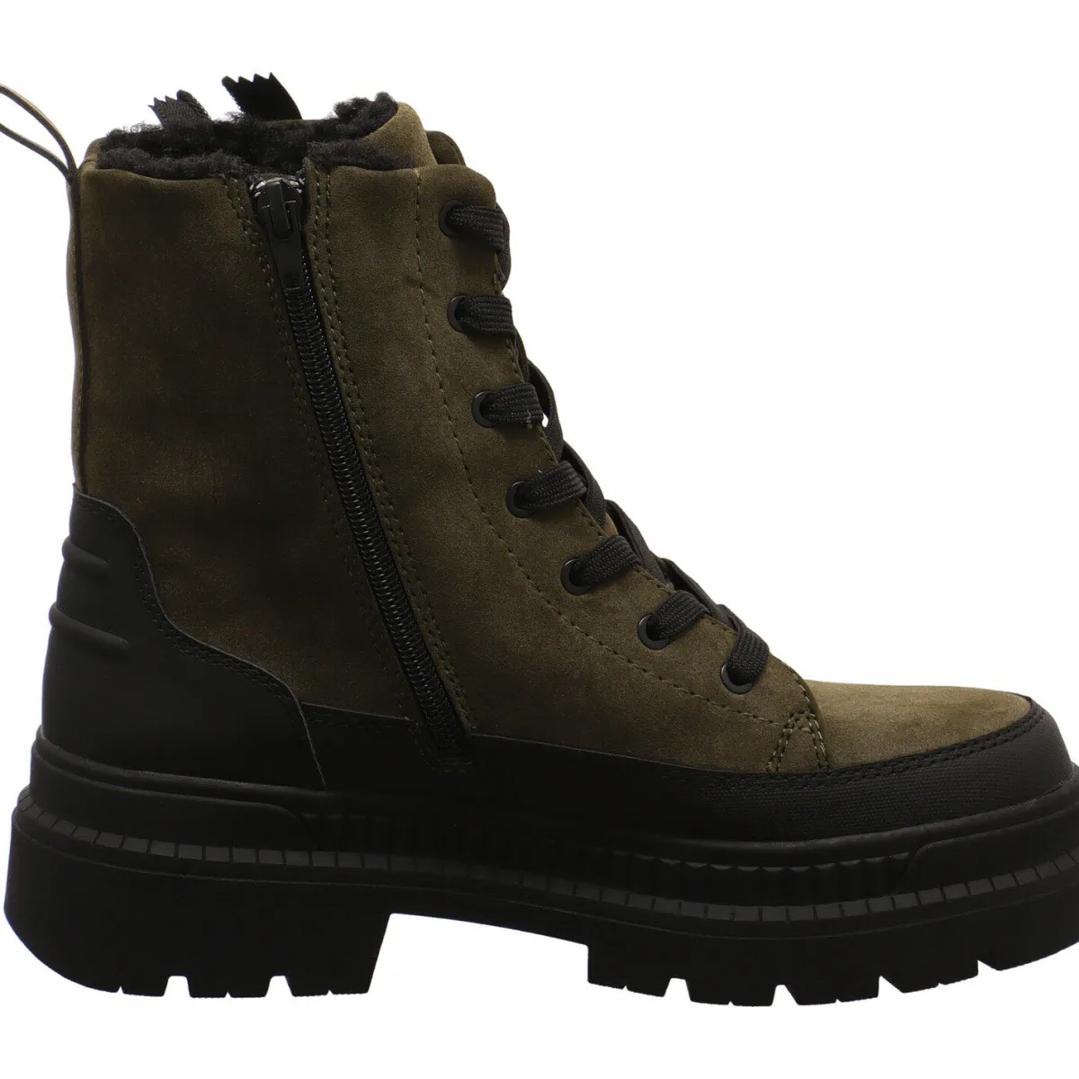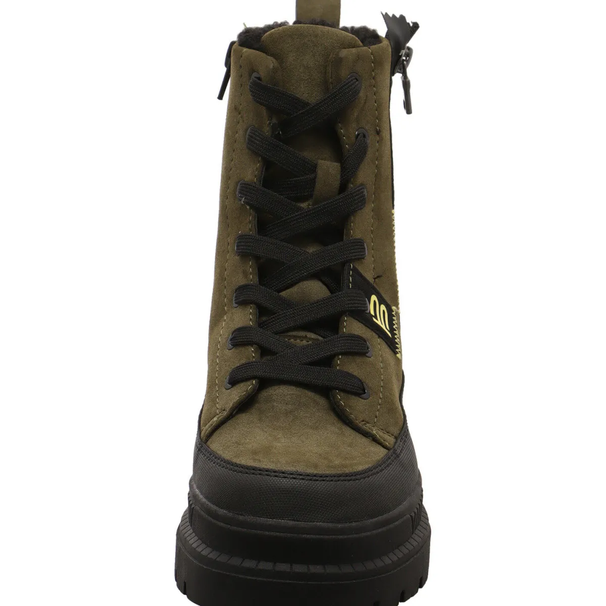 An der Außenseite wurde ein Zierzipper angebracht und mit Akzenten in Gelb versehen. Mit der Lasche an der Rückseite vom Schaft und dem Reißverschluss auf der Innenseite ist ein leichter Einstieg möglich. Mit der Schnürung kannst du den Schuh optimal an deinen Fuß anpassen. Das Innenfutter ist besonders dick und flauschig damit du auch an kalten Wintertagen warme Füße hast.