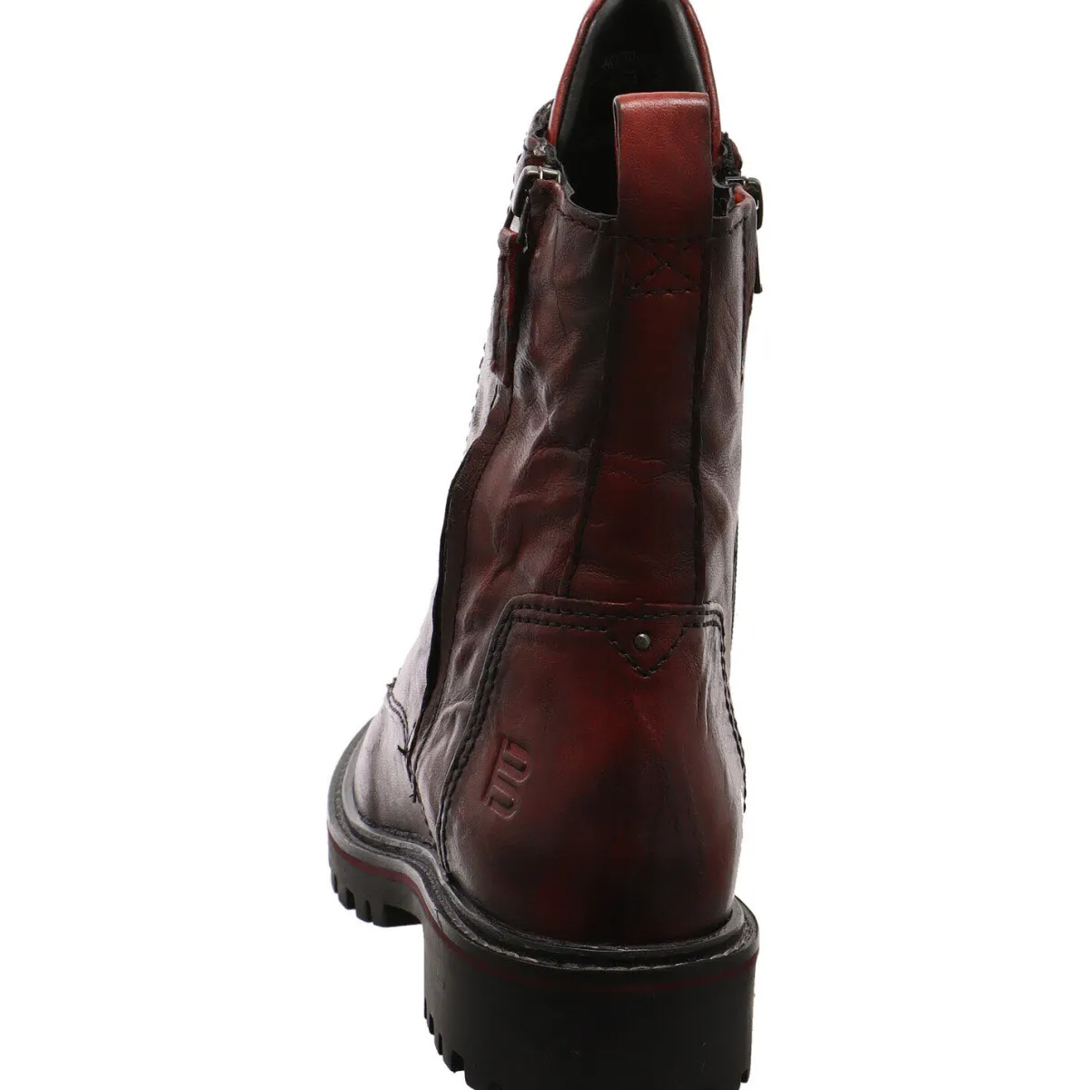 Optische Highlights sind der Dekozipper am Schaft, der Antik Look des Leders und die hochgezogene Zunge.